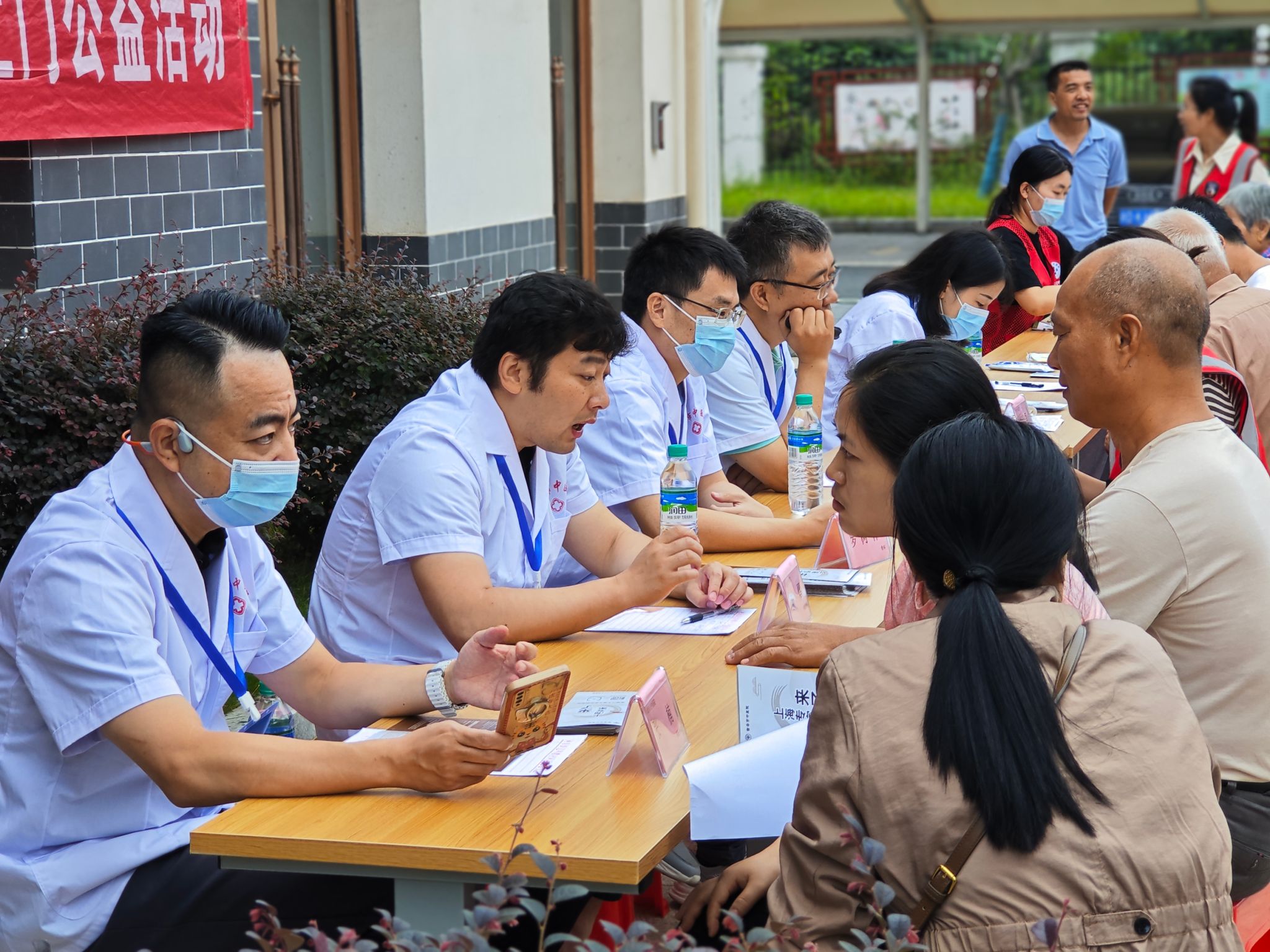 为做好前期准备工作,政法学院研究生党支部的志愿者们早早到达现场,配合科教社区的工作人员精心布置现场。在活动正式开始之后,志愿者各司其职,相互配合,对前来参加社区义诊的老年人进行现场引导,对焦虑的老年人进行情绪开导,配合上海的医疗专家开展治疗并协助医生递送所需要的物品。在活动结束后,志愿者与科教社区的工作人员以及上海的医疗专家合影留念,社区义诊活动圆满完成。