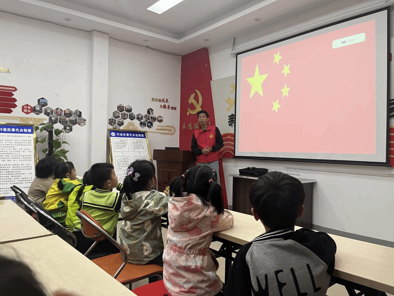 活动当天,支部党员志愿者与学院部门学生一同前往。首先,志愿者们向梅苑社区幼儿园的同学们以风趣而又不失尊重地方式介绍了国旗和国歌的含义,使他们对国旗和国歌有了更深的理解和认识。在志愿者们的示范和指导下,大家庄重地演唱国歌,情感充沛、自豪且自信。随后,志愿者们以讲故事的形式,向同学们介绍了伟大的红色故事和红色人物。小朋友们认真聆听,掌声不断。最后,志愿者们为小朋友们准备了一场有趣的红色人物竞答,让小朋友们在欢乐中学到了更多红色知识。