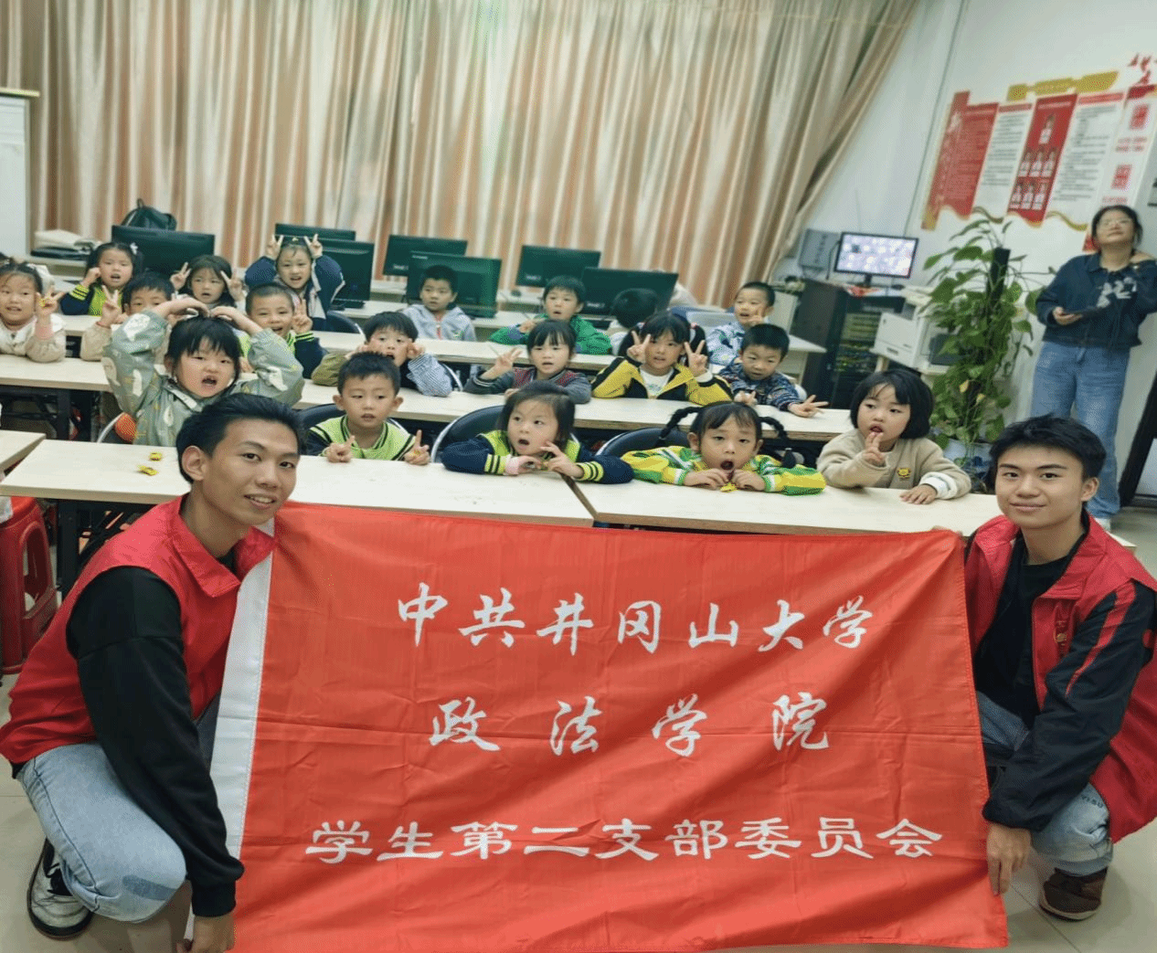 为深入开展社会主义核心价值观宣传教育,深化爱国主义、集体主义、社会主义教育等,10月27日,政法学院学生第二党支部依托“主题党日”于梅苑社区开展了“红星照童心,党史育新人”社区志愿服务活动。