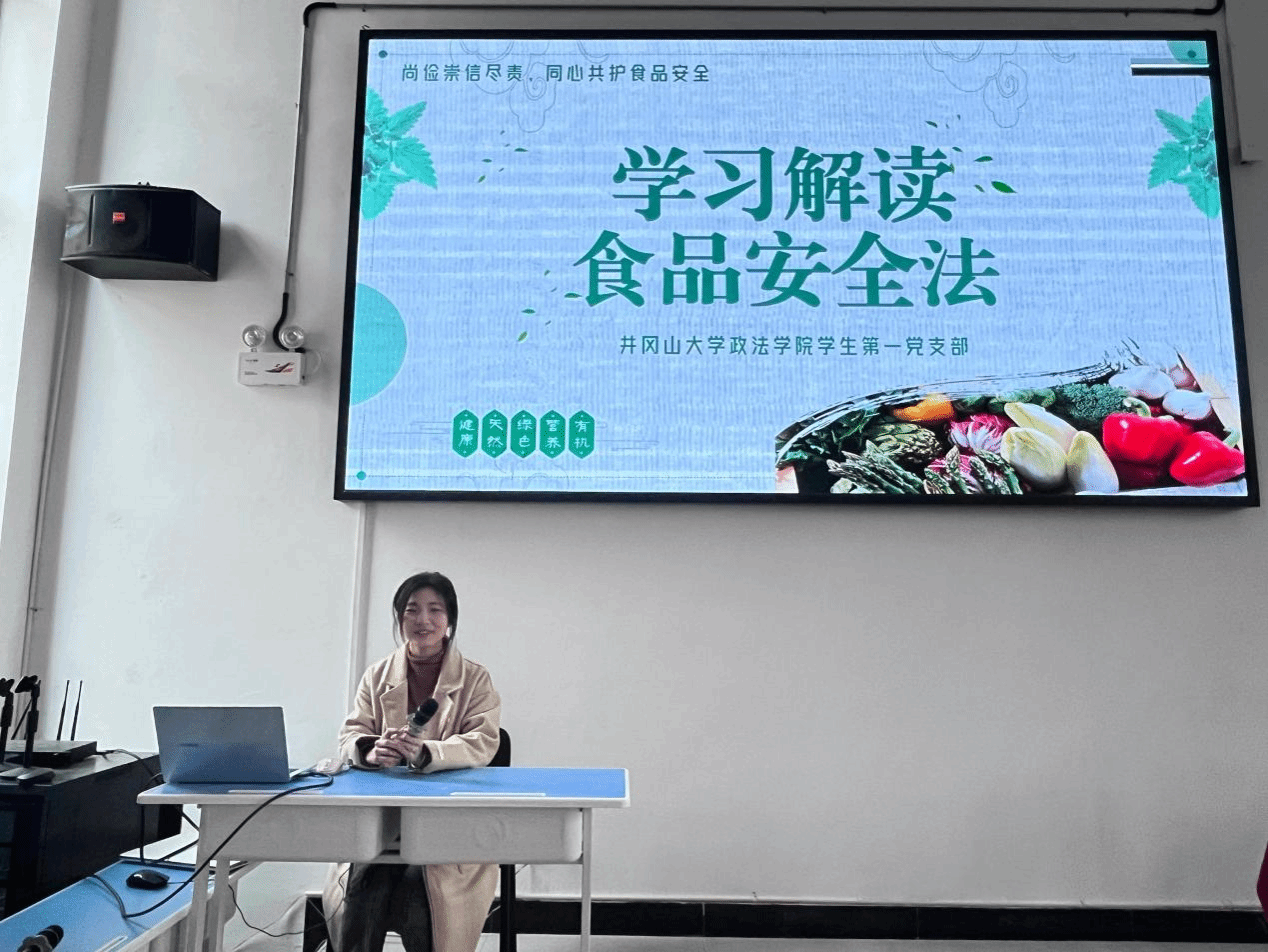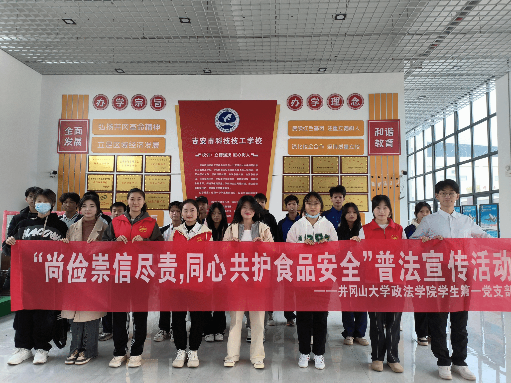 “民以食为天,食以安为先”。为切实增强青少年的食品安全意识,助力提升青少年法治意识和法治素养,2023年11月30日,井冈山大学政法学院学生第一党支部的志愿者们走进吉安市科技技工学校开展了“尚俭崇信尽责,同心共护食品安全”国家食品安全法普法宣传活动。