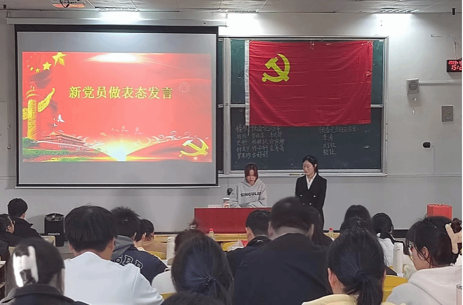 会议严格按照党组织接收预备党员程序要求,与会人员全体合唱国际歌,发展对象依次介绍个人基本情况,重点汇报了对党的认识、入党动机、本人履历、家庭和主要社会关系以及需要向党组织说明的问题。其次发展对象进行抽签选题逐个答辩,考评组也针对各个方面进行了提问。随后,入党介绍人分别对发展对象的现实情况作了详细介绍,党支部书记杨婷代表支委会向与会党员报告了对该同志的审查情况,与会党员逐一进行讨论,并充分发表意见。最后,采取无记名方式进行投票,与会党员一致同意将周帅、史册、钟凌宇、罗苏珍、罗娅苏、蔡胜仪、许子妍、古婷婷、李文静、俞依娜、崔箫箫共十一名发展对象接收为中共预备党员。