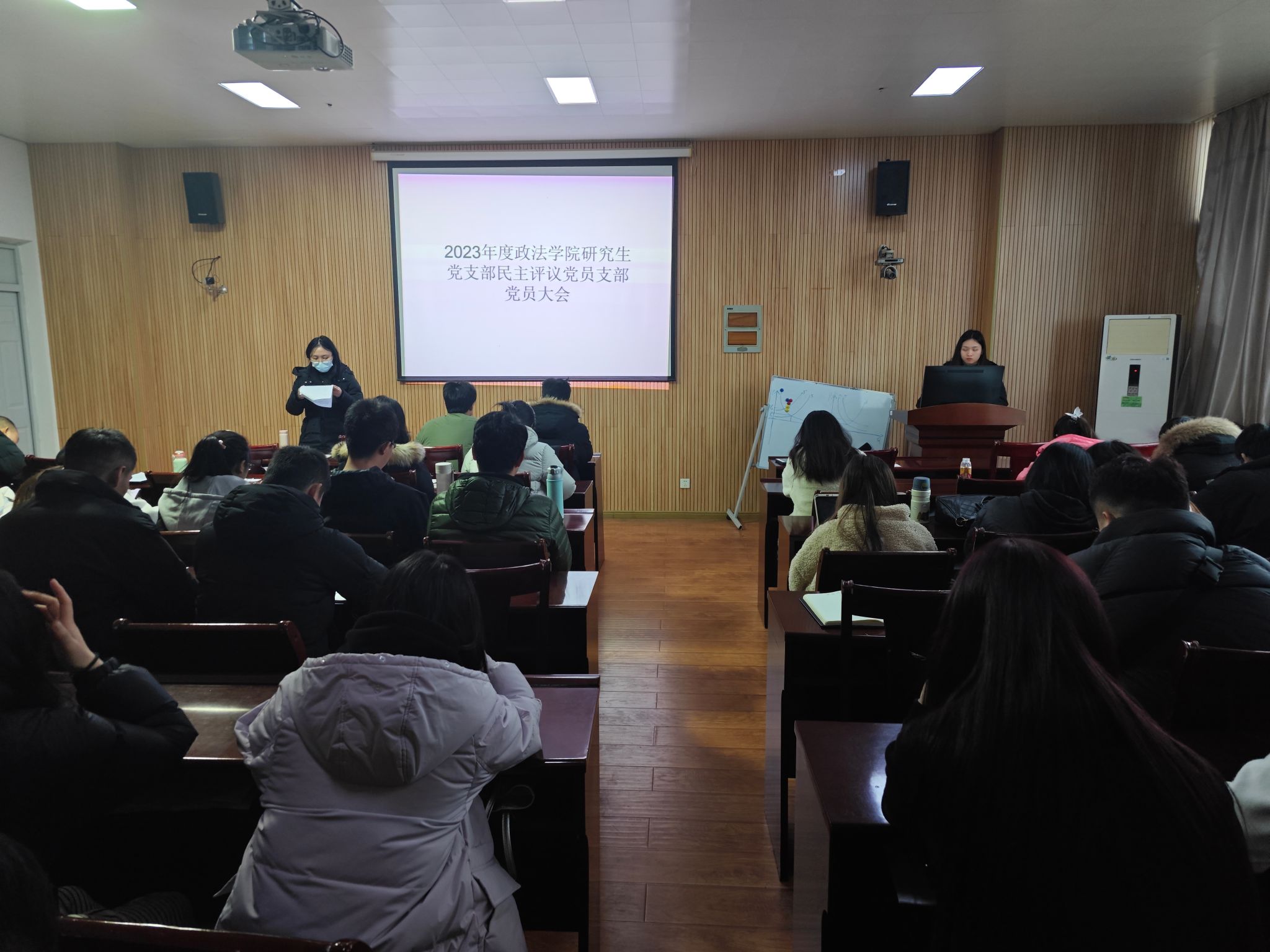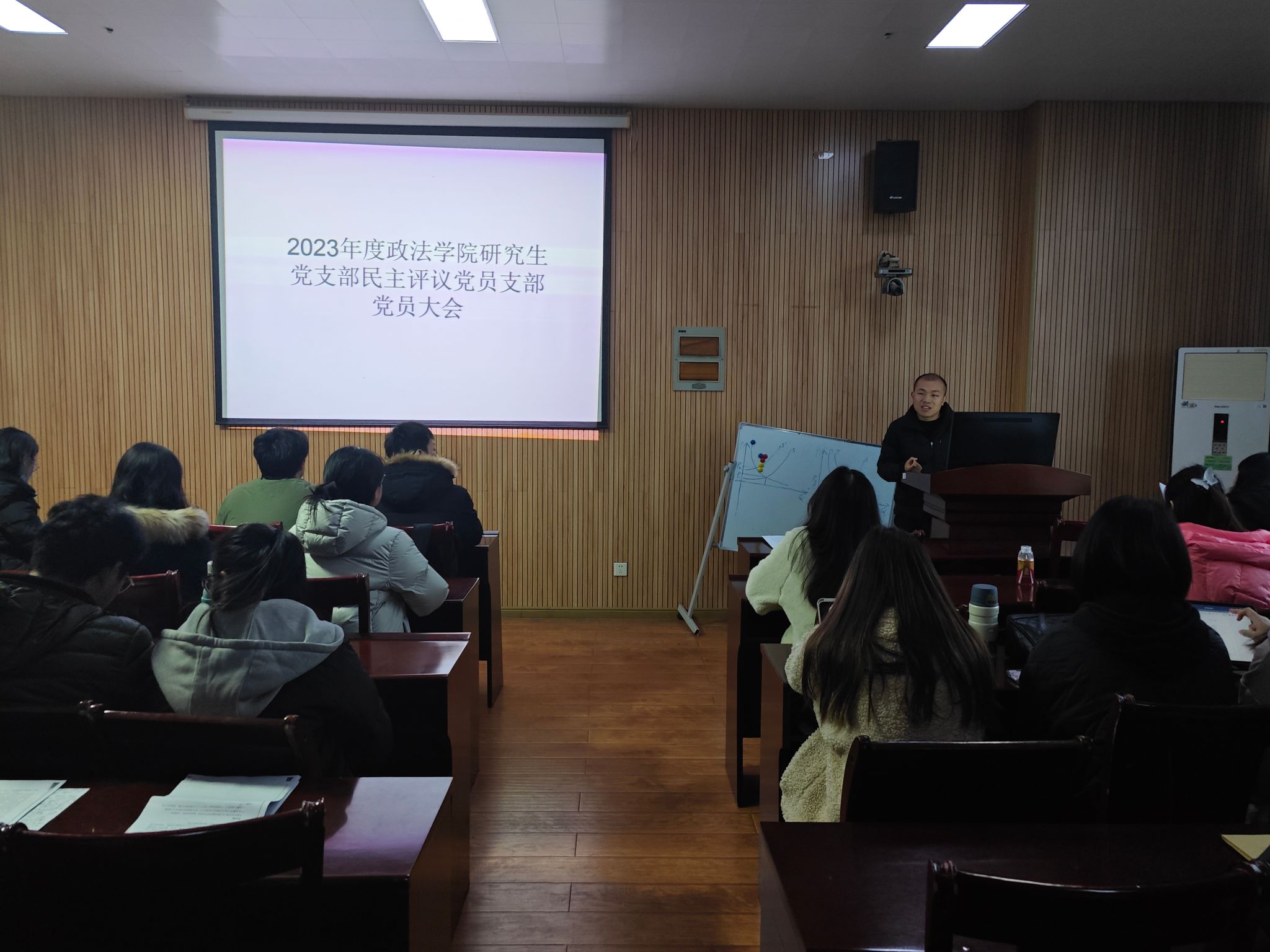 为深入学习贯彻党的二十大精神,严格执行党的组织生活制度,增强党员的组织、纪律观念,提升党支部凝聚力和战斗力,2024年1月5日下午,研究生党支部召开2023年度民主评议党员大会,支部全体党员参加会议,会议由党支部组织委员李紫琳主持,政法学院副院长王才章莅临指导。