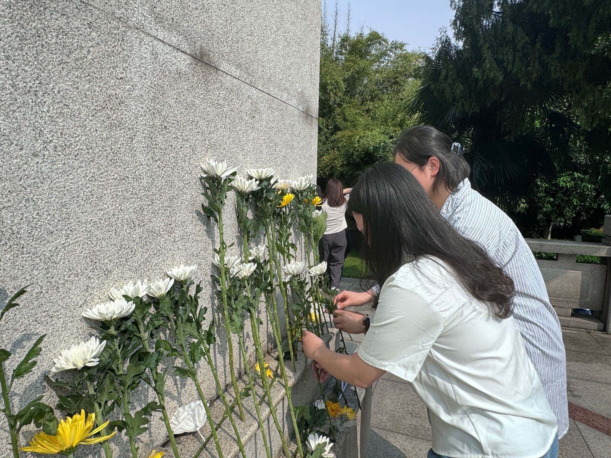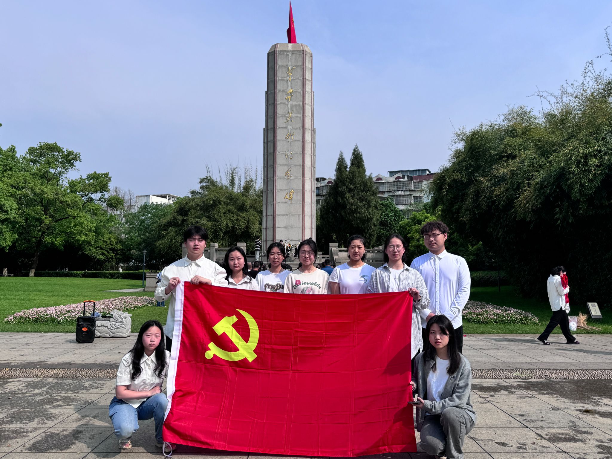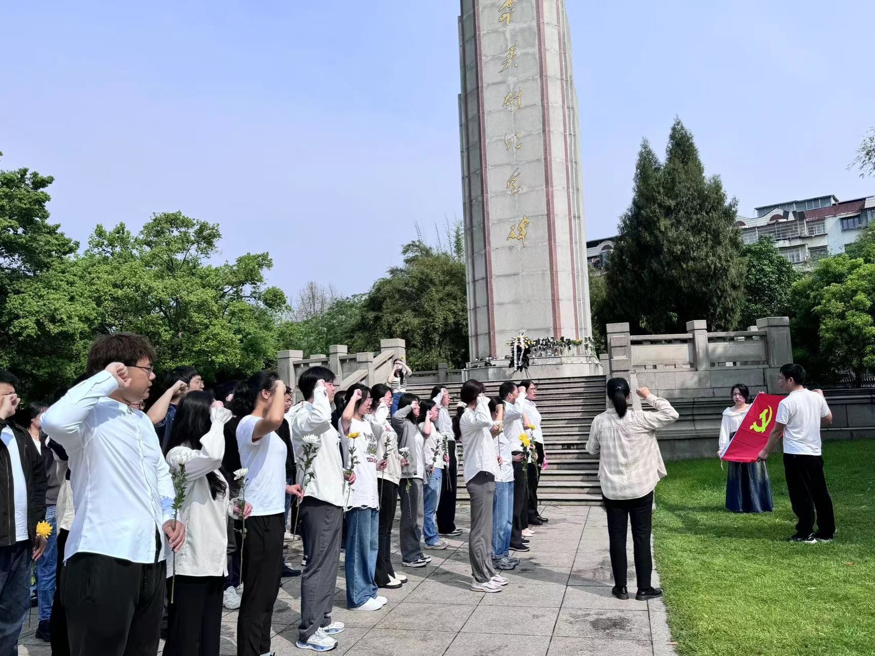 青山处处埋忠骨,何须马革裹尸还。同学们瞻仰革命烈士纪念碑,一个个手捧鲜花,眼神凝重,目光注视着眼前的革命烈士纪念碑和那段悲壮的历史。同学们向革命烈士默哀、献花,表达对革命烈士的无限哀思。在庄重的氛围下,重温入党誓词,字句铿锵有力,展现同学们继承先辈遗志、不忘初心、牢记使命的坚定信仰。