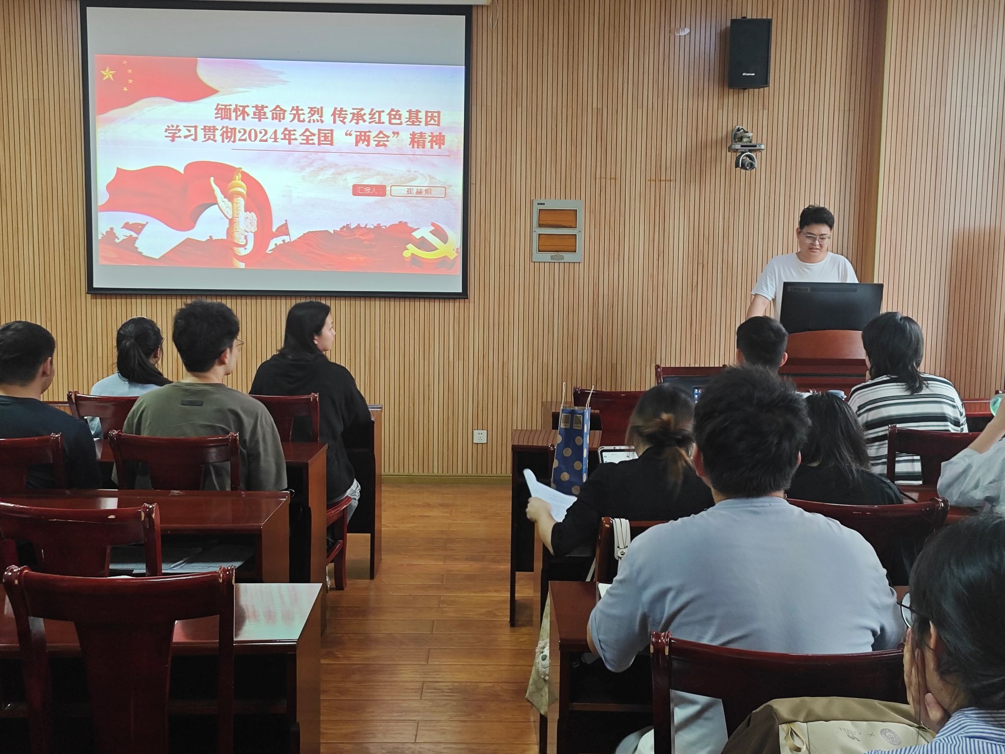 为及时跟进学习习近平总书记近期重要讲话精神,深入学习领会全国“两会”精神和习近平总书记在全国“两会”期间重要讲话精神,加强党员教育,增强党性意识。2024年4月17日下午,政法学院研究生党支部在10栋A116召开了“缅怀革命先烈,传承红色基因,学习贯彻2024年‘全国两会’精神”主题党日活动。