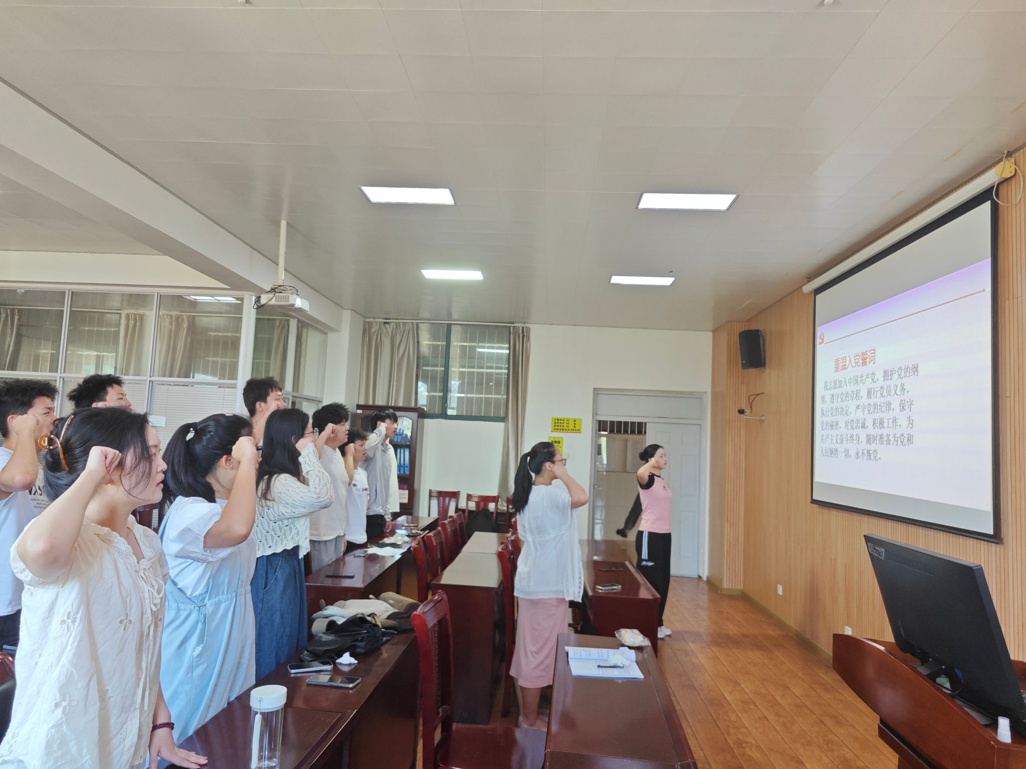 随后,带领与会党员重温入党誓词,进一步坚定了大家的理想信念和党员身份意识。并邀请蔡令军、鲁力玮同志分享入党动机,让与会同志们感受到入党的那份庄重和神圣。学习结束后,与会人员围绕主题展开了热烈的讨论和交流。大家纷纷表示,通过此次学习,不仅加深了对伟大建党精神的理解,也更加明确了自身的责任和使命。作为新时代的青年党员,我们要继承和发扬党的优良传统,用实际行动践行党的宗旨和使命。