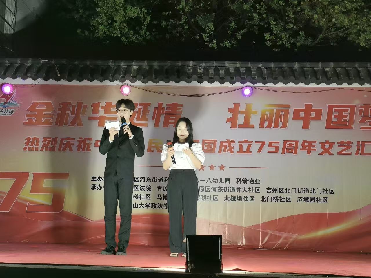 金秋华诞情,壮丽中国梦。为弘扬爱国主义精神,营造浓厚的节日氛围,2024年9月26日晚19时,政法学院学生第一党支部联合科教社区共同开展了一场精彩纷呈的庆祝中华人民共和国成立75周年文艺汇演活动。