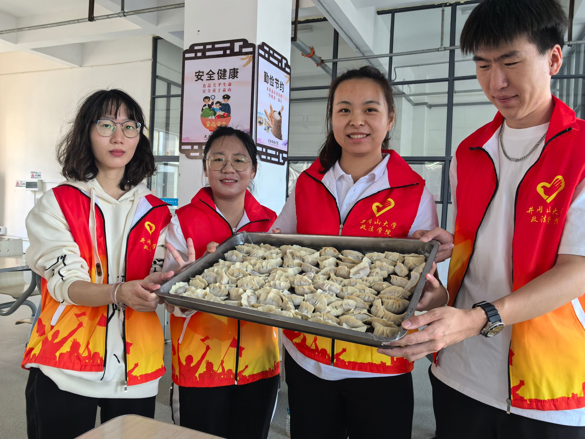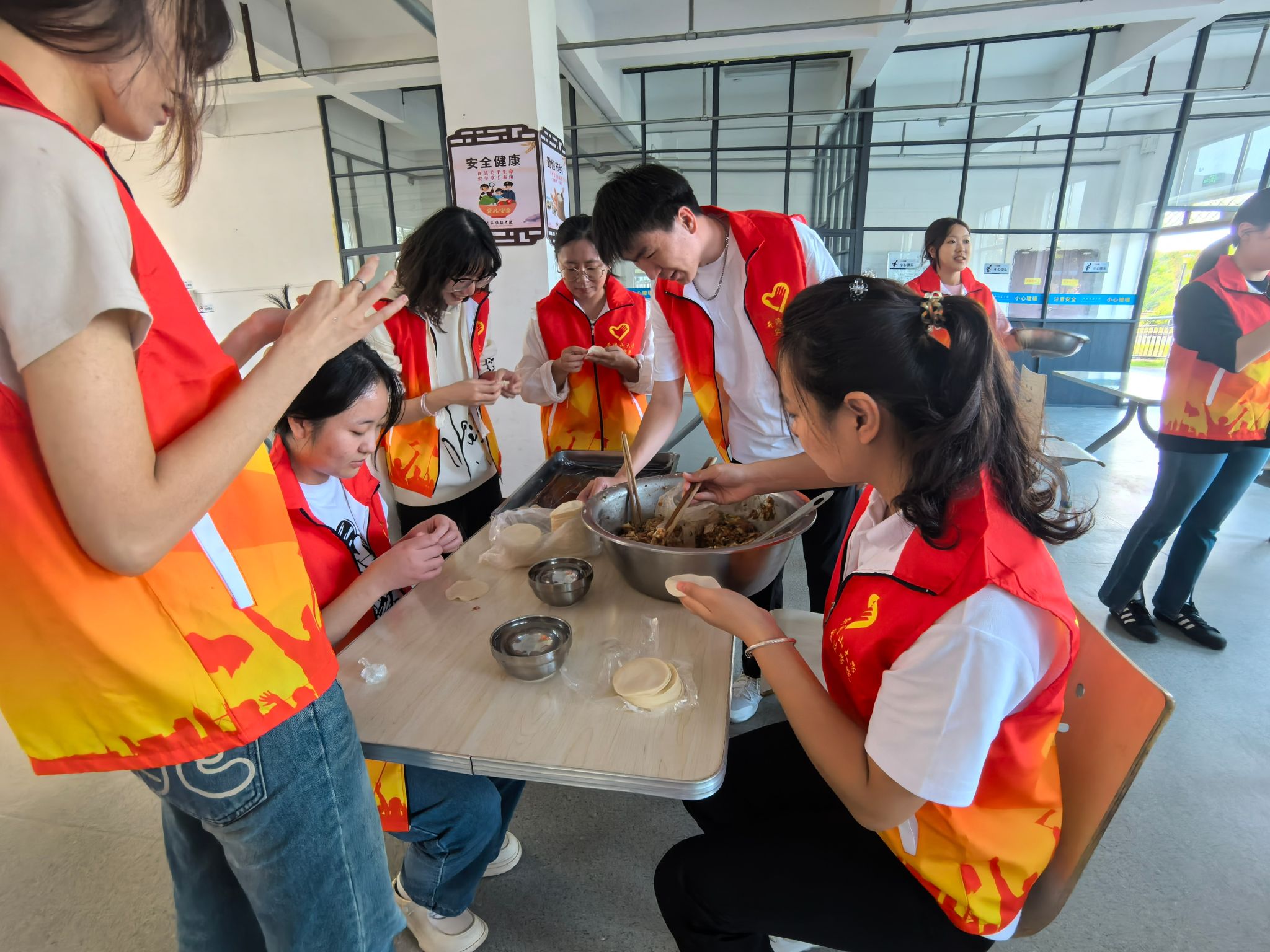 在雷治国院长带领下,支部党员和入党积极分子们首先看望了天玉镇敬老院的老人们并向他们送上诚挚的节日问候和祝福,之后大家撸起袖子投入与敬老院老人一起包水饺。学生党员和入党积极分子一边娴熟的包着饺子,一边请老人们评评谁包的饺子好,现场气氛活跃。经过一个多小时的努力,餐盘里摆满了各式各样的水饺,每一个水饺都包含着学生党员和入党积极分子对爷爷奶奶们浓浓的关心和爱意。随着热气腾腾的饺子出锅,敬老院顿时也变得热闹起来,大家也积极为行动不便的老人们端来水饺。伴着阵阵欢笑,此次“爱在深秋 情浓重阳”爱老敬老主题党日活动也圆满完成。