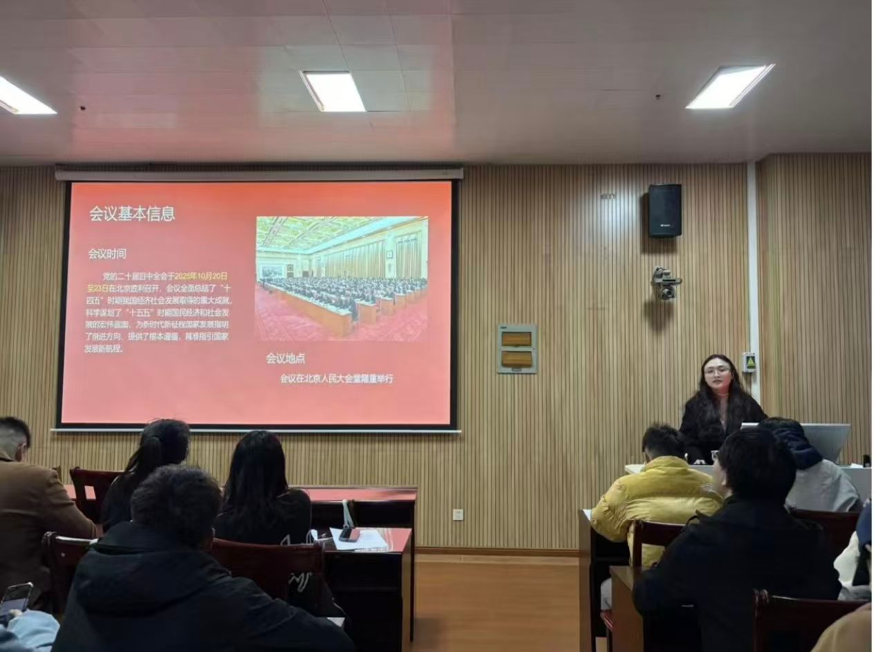 11月25日,井冈山大学政法学院研究生党支部以“践行全会部署,书写社工担当”为主题,召开党的二十届四中全会精神专题党课。支部书记欧阳蓓同志主讲,全体党员参与。旨在通过“理论对接实践、使命锚定专业”,推动全会精神转化为社工专业党员的行动自觉。