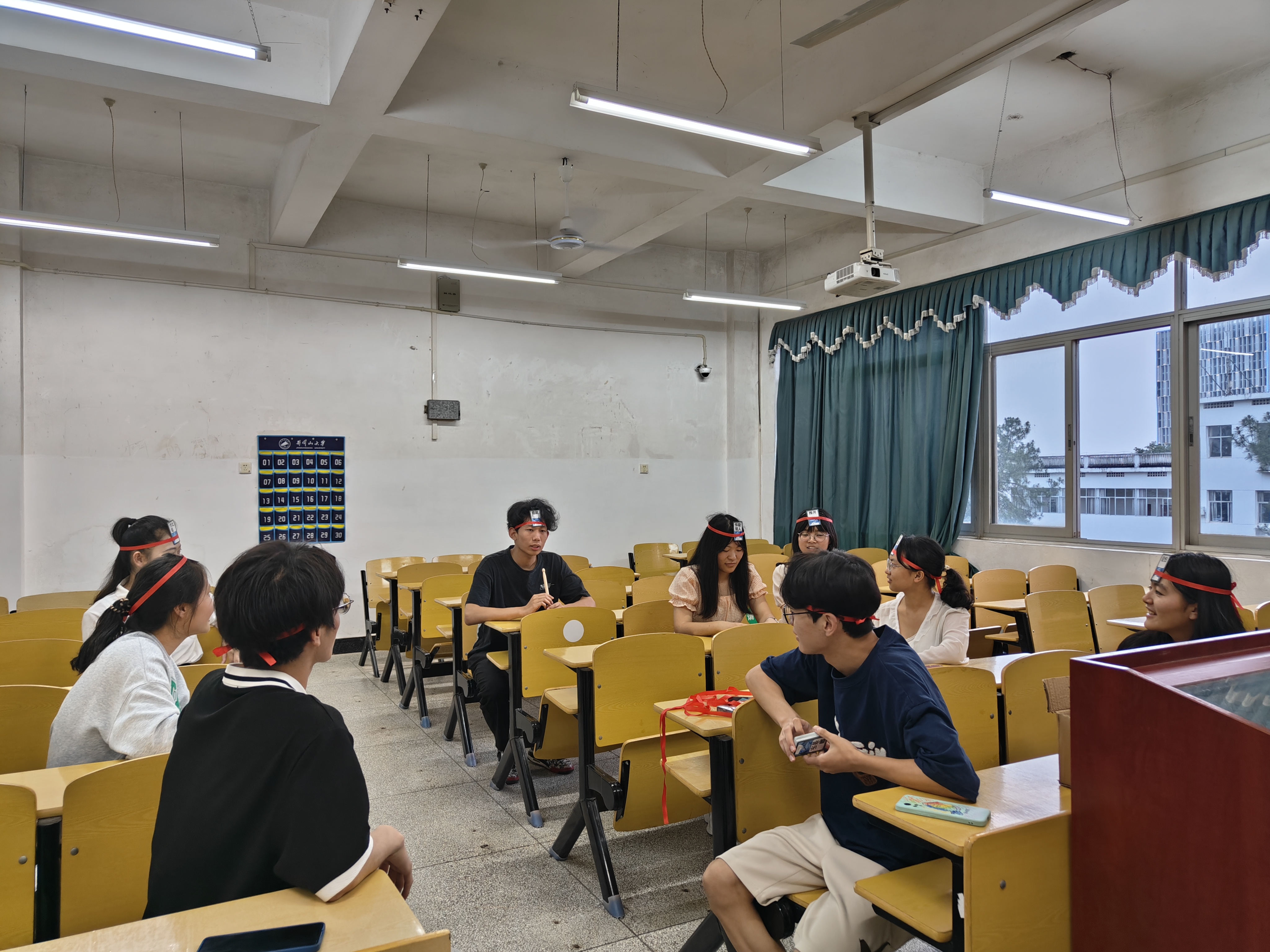 此次活动,又称“破冰活动”,帮助各民族同学们相互熟悉。活动开始,各位同学分别用民族语言和普通话进行自我介绍。随后,活动负责人带领大家开始做游戏:“害你在心口难开”。游戏内容是在场人员随机抽取卡片作为禁止动作,佩戴在前额,通过语言促使其他人做出禁止动作。有趣的游戏将大家第一次见面的陌生感消解,同学们欢声笑语,氛围融洽。