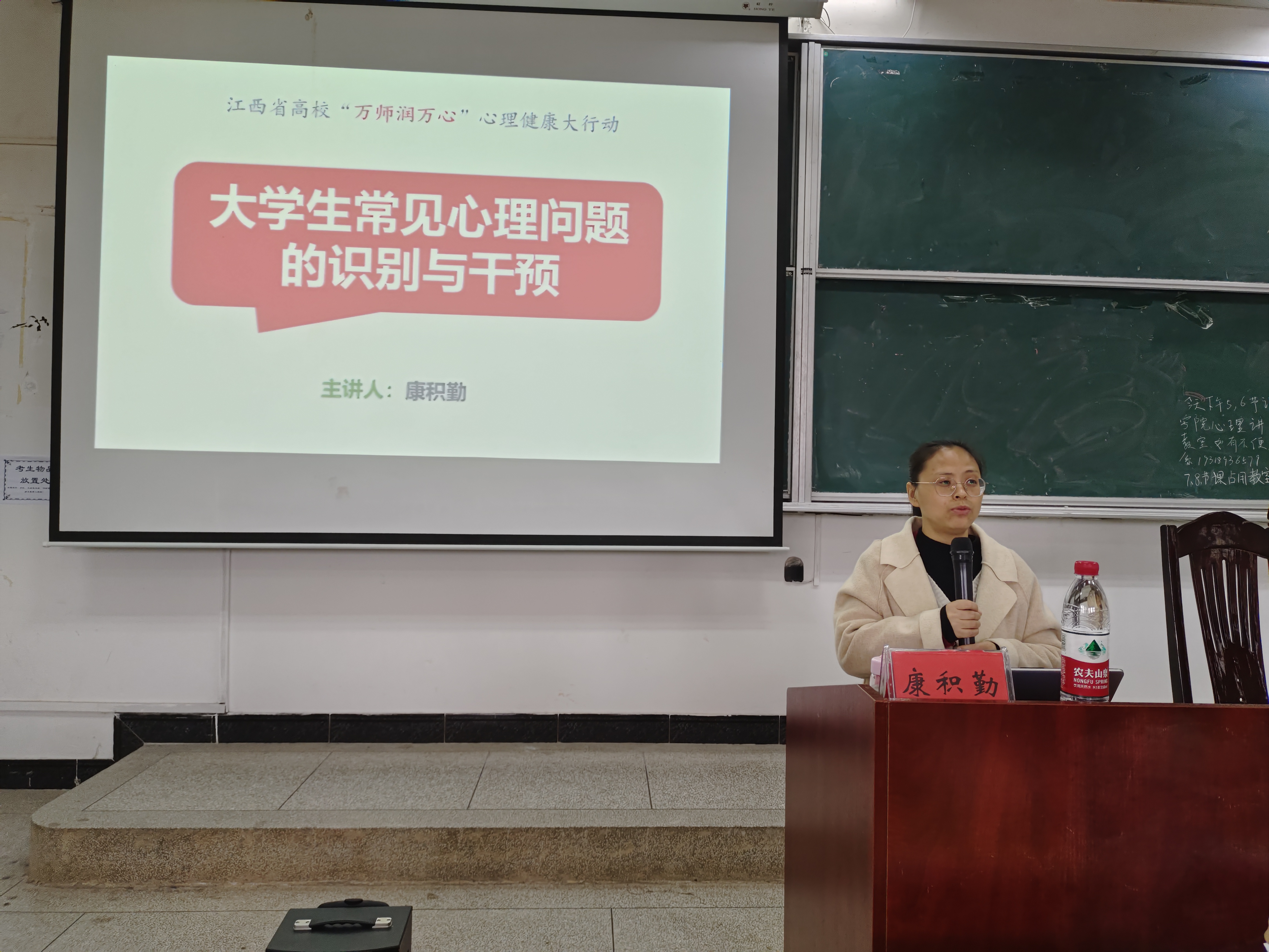 首先,康积勤用浅显易懂的语言,结合生动的事例和形象的图片为同学们讲解了心理问题的重要性,还表示寝室长、心理联络员应该积极与每位同学交流,发现同学们的细小问题。随后,康积勤从心理问题、精神障碍、人格障碍和性心理障碍等几个方面为大家一一展开讲解。同学们积极与康积勤互动,在欢声笑语中明白了心理健康的真正意义所在。讲座最后,康积勤为同学们指明了学习的方向:努力寻求自身改变,不断超越自我。