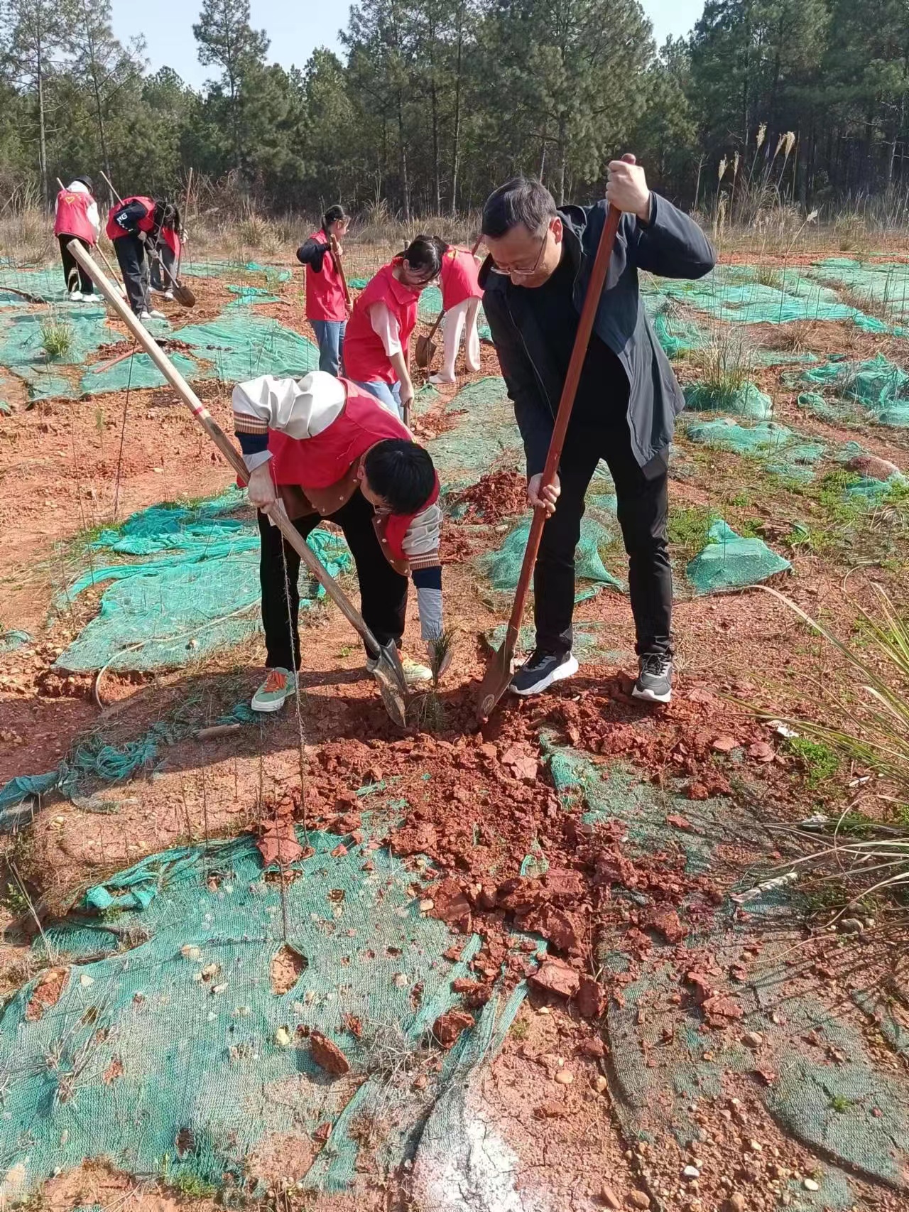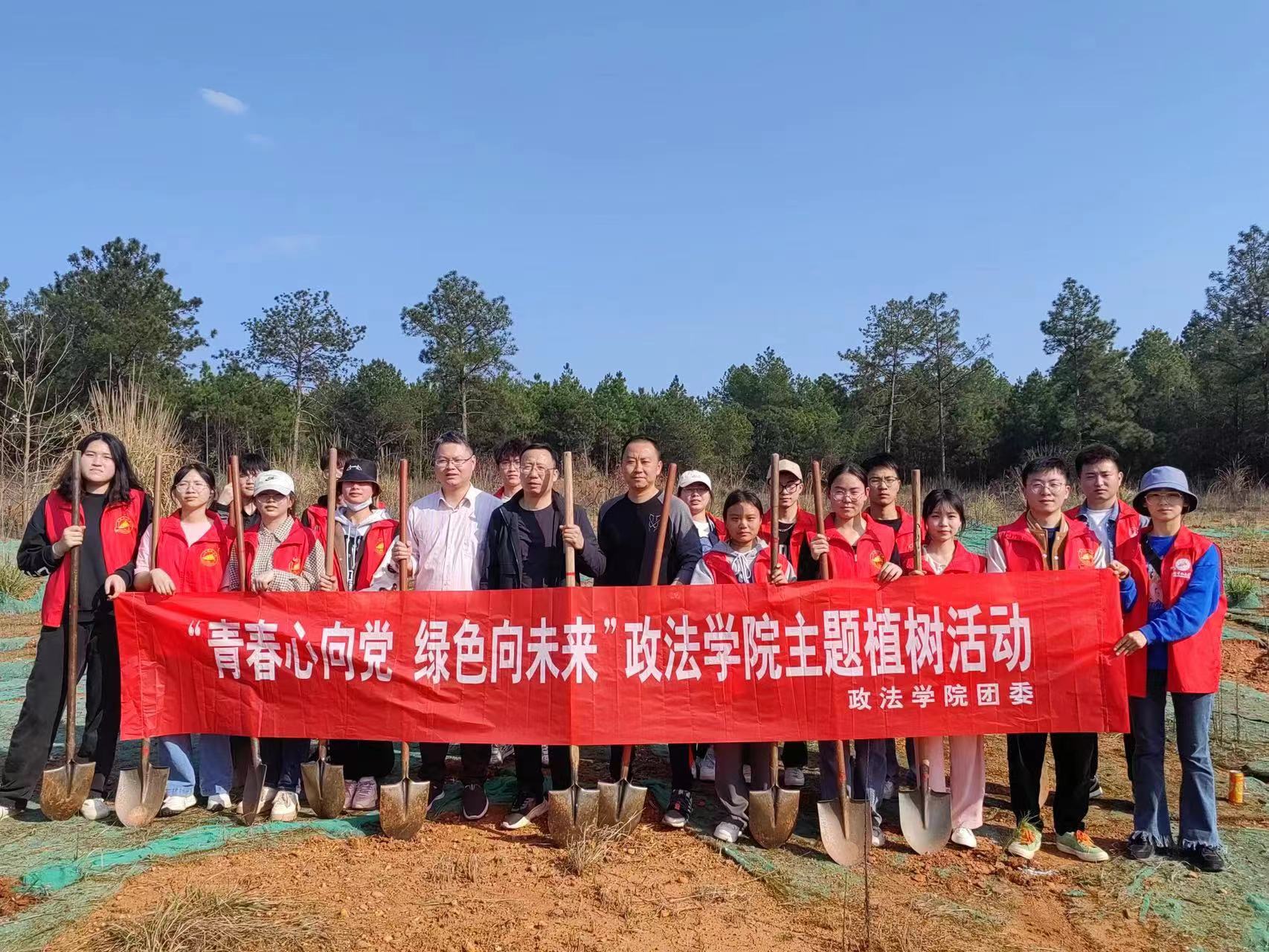 春风催新绿,植树正当时。在第45个“3·12”植树节来临之际,为进一步弘扬学雷锋志愿服务精神,以实际行动践行植绿、护绿、爱绿的文明新风,营造全院师生参与植树造林的良好氛围,政法学院领导班子带领学生党员、青年团员,开展“青春心向党、绿色向未来”主题植树活动。