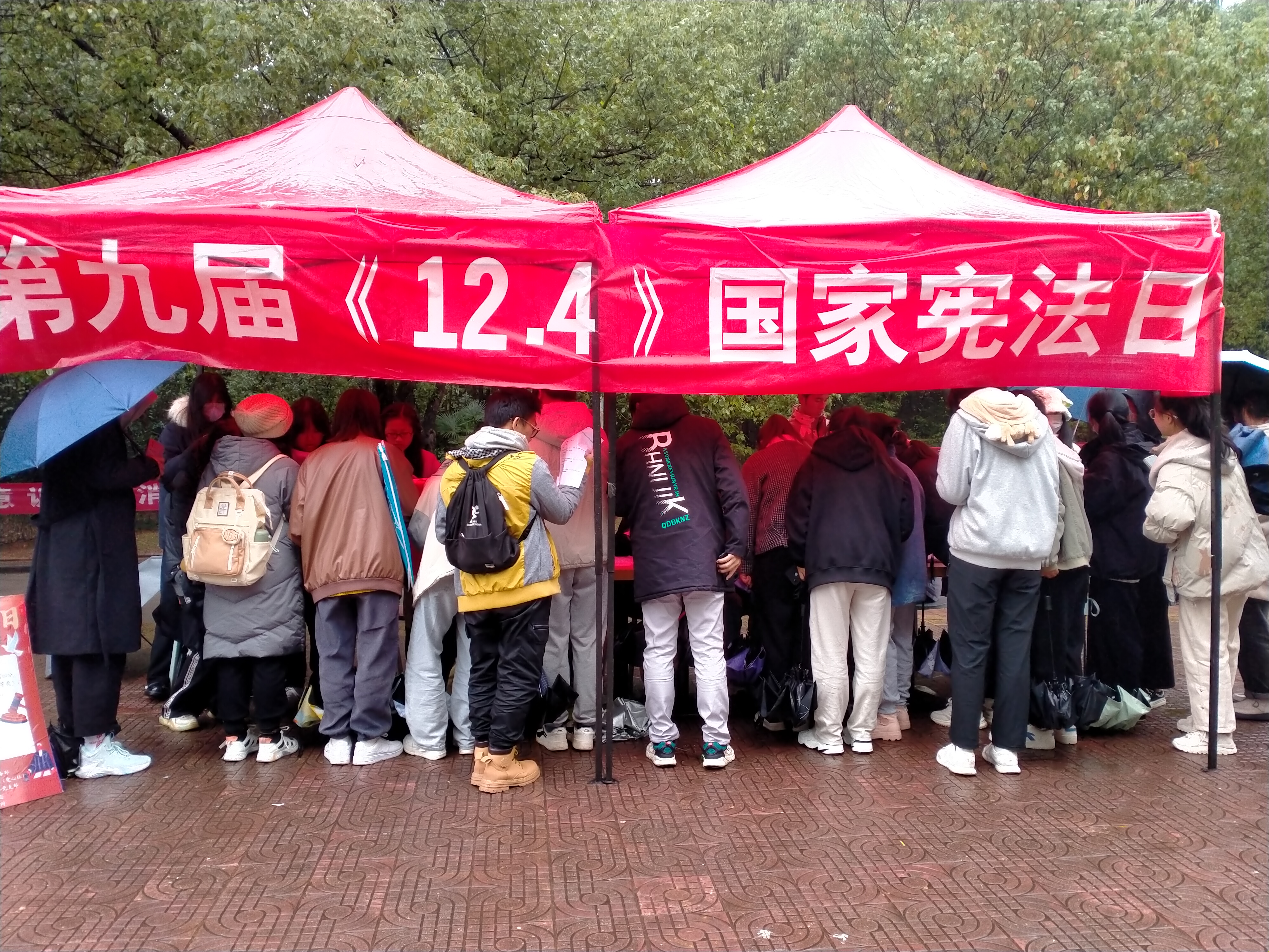 为提高和进一步增强全体学生的法律意识和法治观念,深入开展普法教育,积极营造和谐校园氛围,12月4日10时30分,政法学院学生权益部和社会实践部联合学生第一党支部、第二党支部、法律爱好者协会与智桥律师事务所一同在南区第一食堂门口开展国家宪法日法治宣传活动。