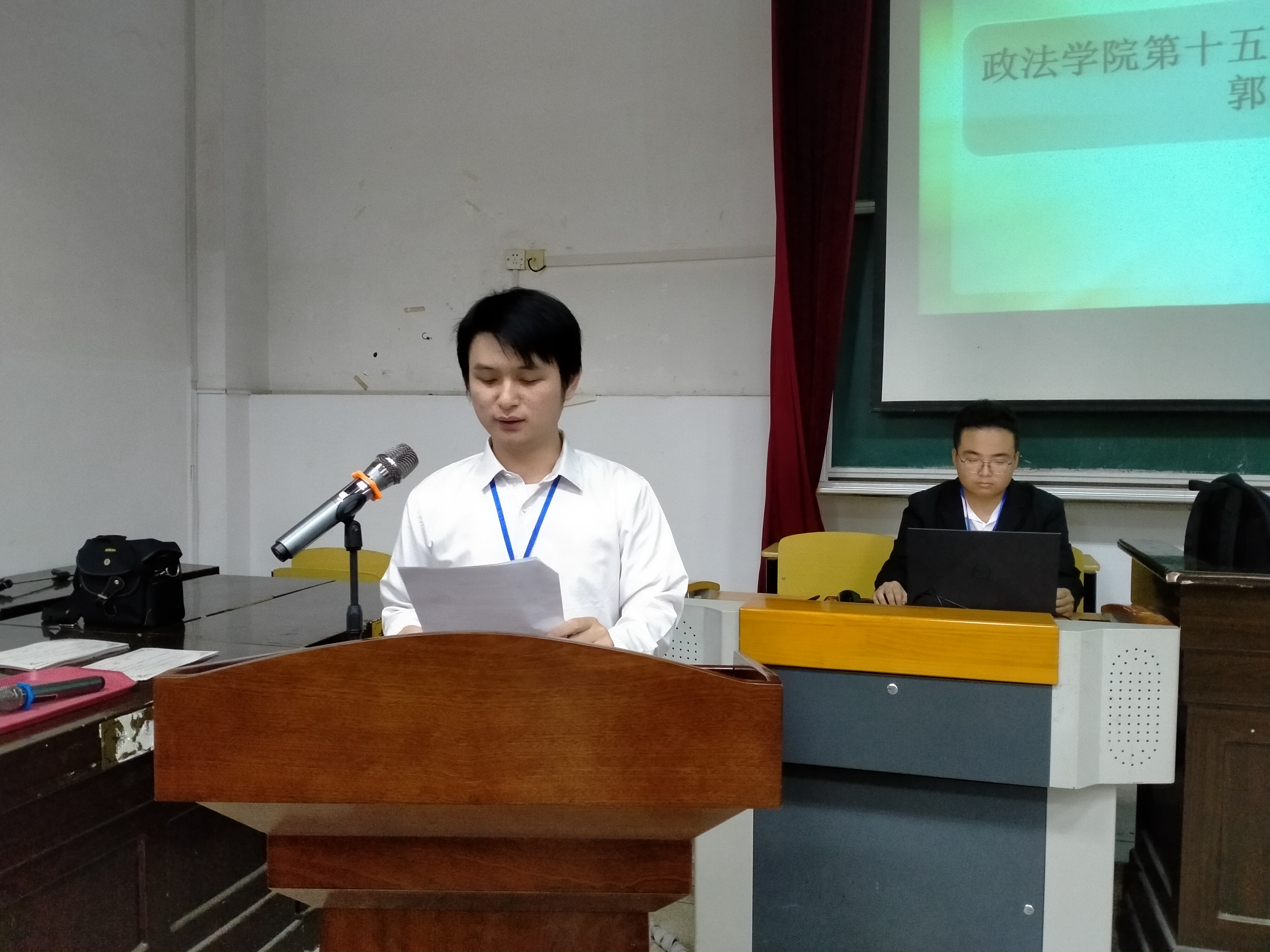 2022年11月19日下午2时30分,政法学院于5栋408举行第十六届团委学生会换届大会。政法学院党委副书记喻聪出席本次大会,政法学院学生会主席曹霖栋担任主持人,我院第十五届、第十六届团委学生会全体工作人员到场参加。
