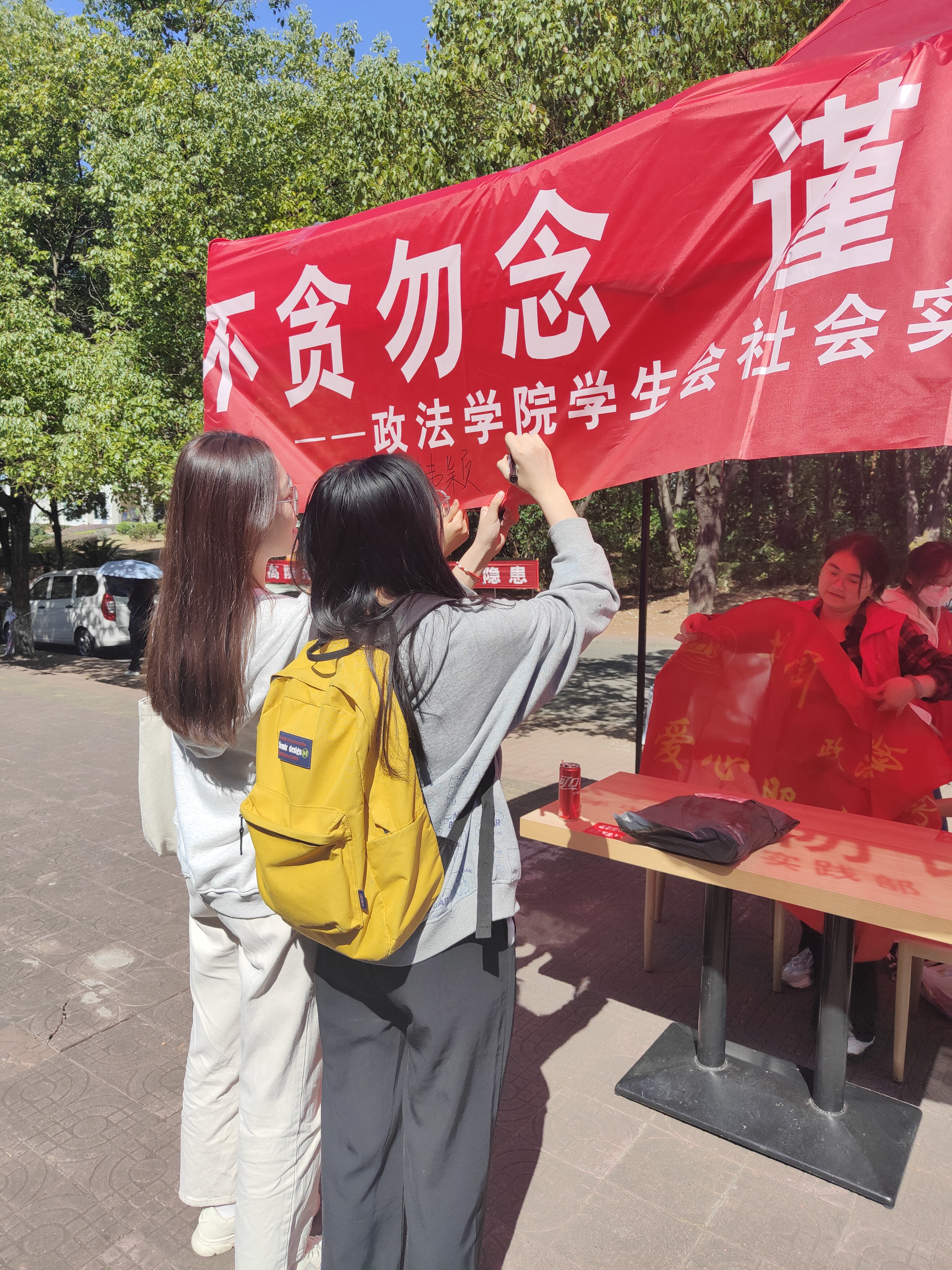 为让同学们进一步了解网络诈骗,学会如何预防网络诈骗, 加强对网络诈骗的重视。10月20日上午11:00,政法学院在南区学生一食堂组织开展了“不贪勿念,谨防诈骗”活动。