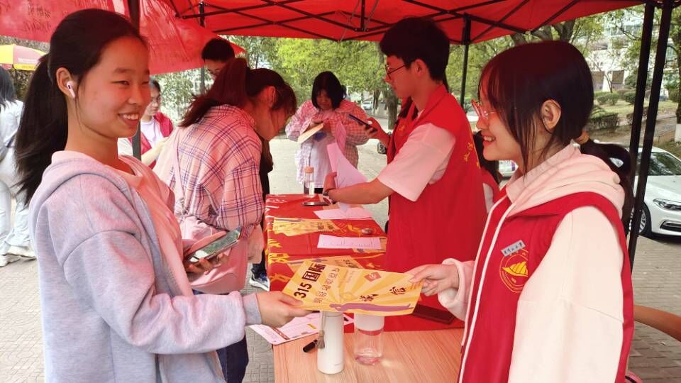 活动现场气氛热烈,广大学生踊跃参与。工作人员通过发放宣传单,讲解维权知识的方式,从《消费者权益保护法》到生活中的方方面面,普及消费者的相关权利以及发生消费纠纷时的解决方式,使大家进一步熟知消费者权益知识,倡导同学们理性消费。同时活动还设有条幅签名、知识问答等活动。同学们积极参与答题,对消费者维权方面的知识进行了了解与巩固。