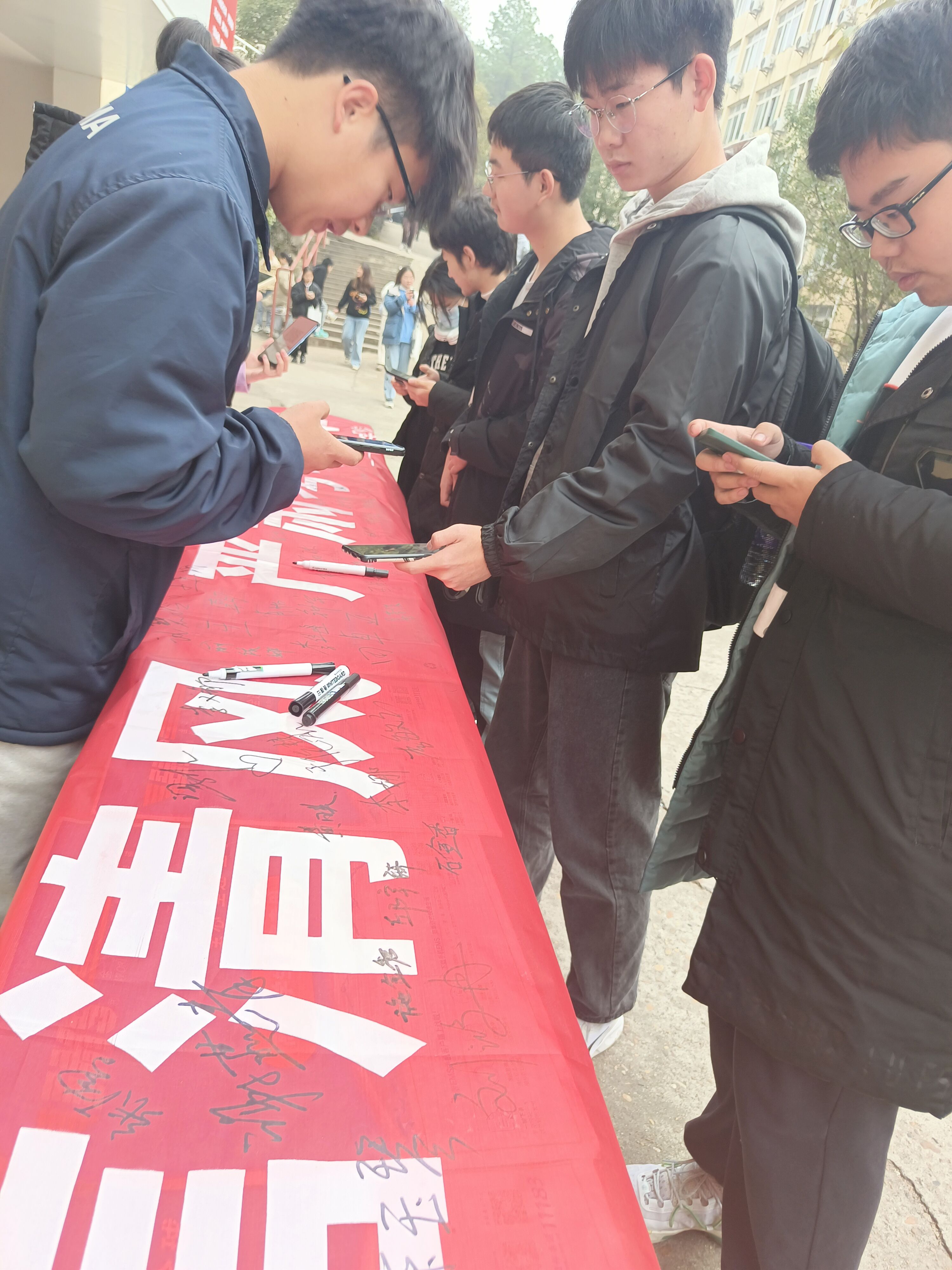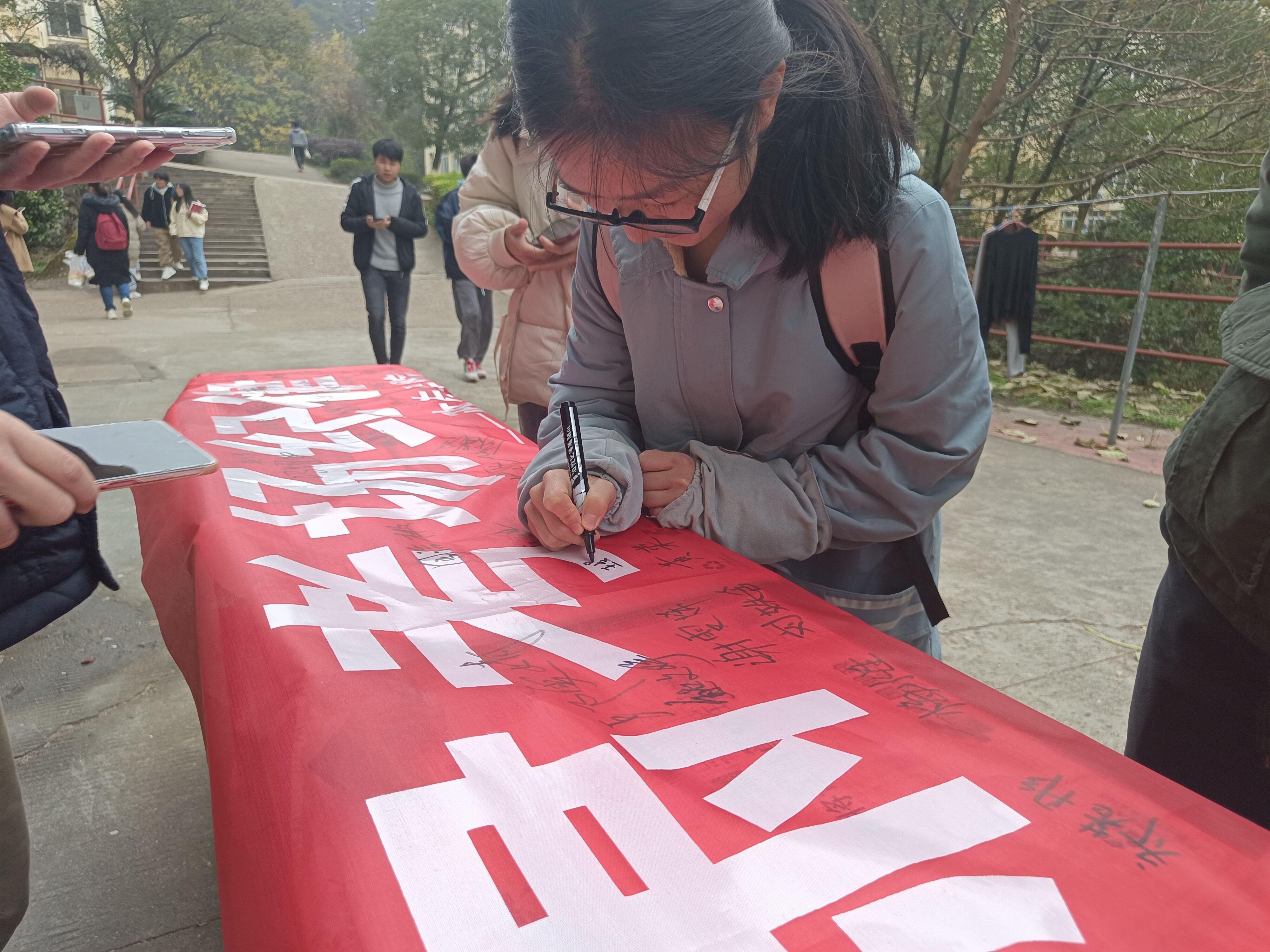 活动得到了同学们的积极响应,同学们纷纷停下脚步,积极参与其中,在横幅上郑重地签上自己的名字,同学们同时纷纷表示会用扎实的知识、求实的态度、顽强的拼搏精神,为自己赢得满意的成绩。