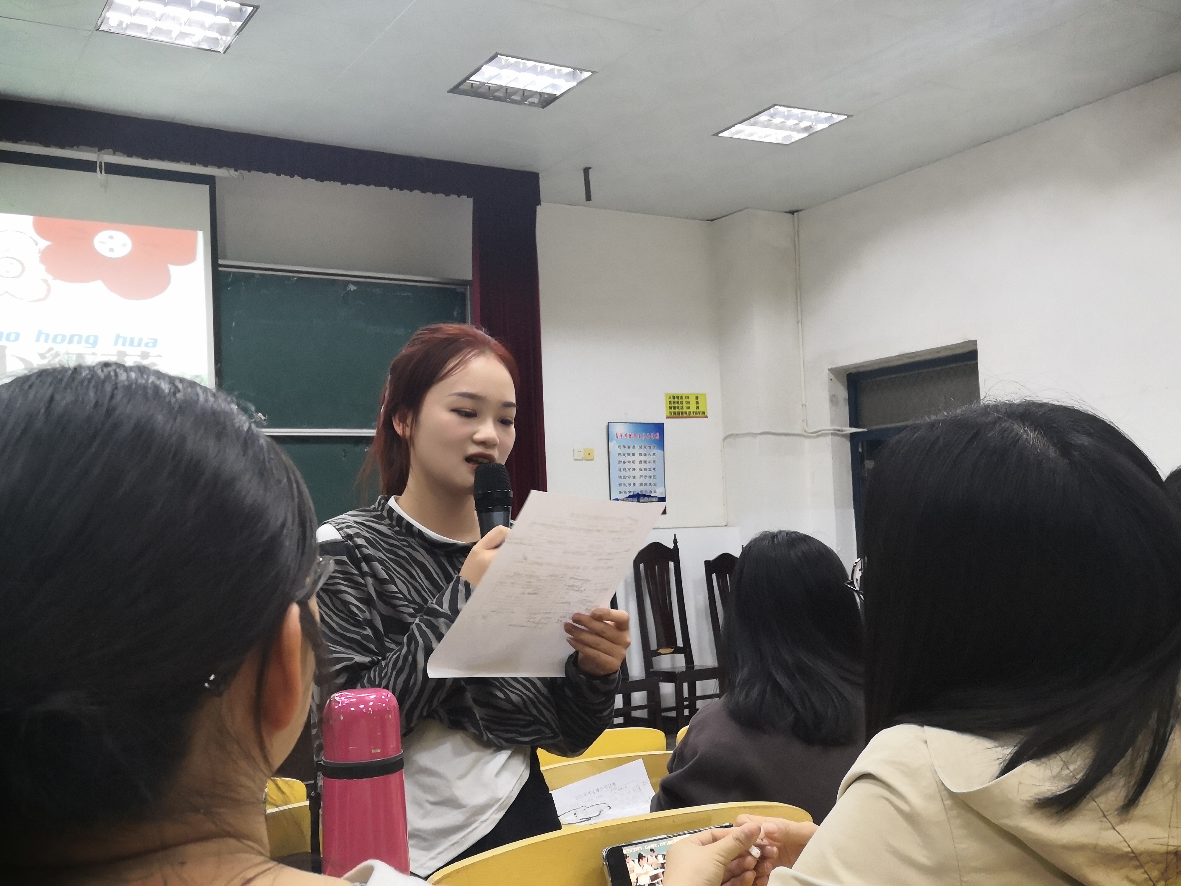 本活动旨在海选精彩的节目,初步构建出毕业晚会的节目框架。初审节目共计13个,节目类型包括小品、相声、走秀、舞蹈、独唱、合唱等。以小品《欲望自习室》开场,演绎了人人都会有欲望,但始终要坚持本心的故事。舞蹈《forever young》展现了大学生的青春活力,独唱《太阳》,以动听的歌声赢得了台下观众的热烈掌声。最后,活动以手势舞《送你一朵小红花》结尾,本次活动落下帷幕。