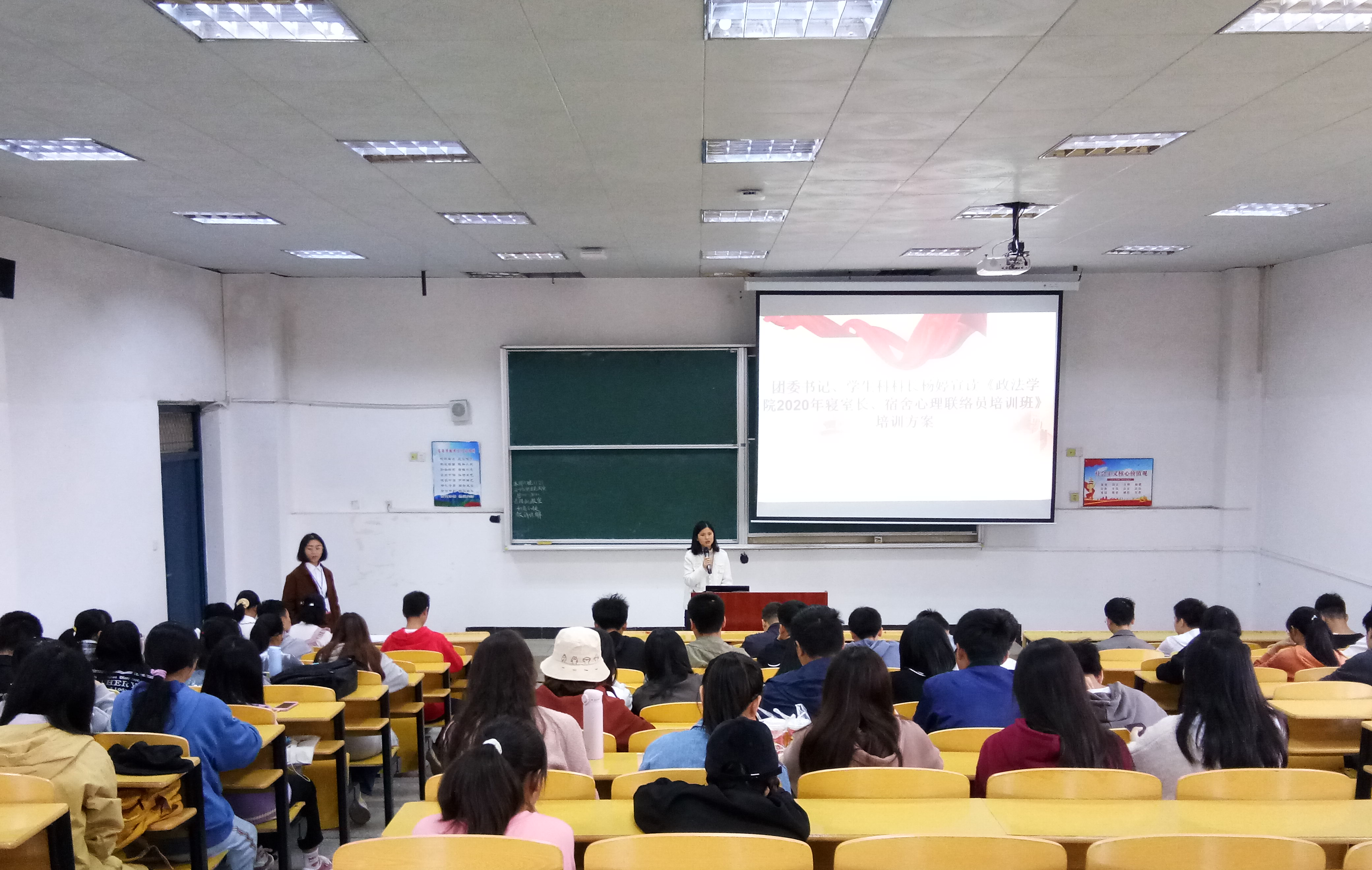 11月21日,政法学院举行2020年寝室长(宿舍心理联络员)培训班开班仪式及开班第一课。政法学院党委副书记吴高平,团委书记、学生科科长杨婷出席,学院全体寝室长、宿舍心理联络员参加。