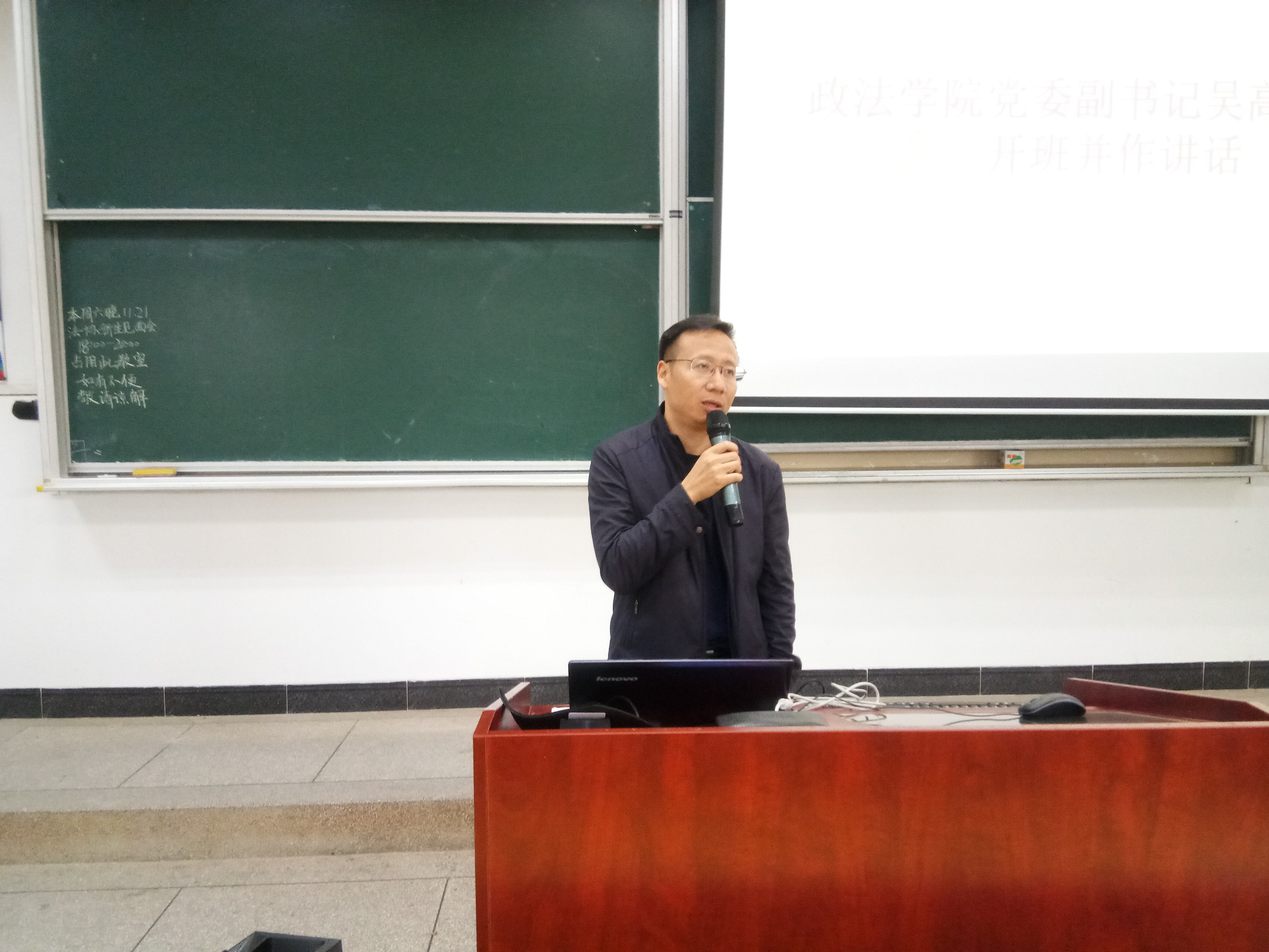 开班第一课由吴高平担任主讲人,他以培育优良室风,促进成长成才为题,指出只有优秀的寝室长才有优秀寝室,并举例论证寝室学风重要性。随后,他用详细的数据说明学风建设的紧迫性。他着重讲述室风建设意义性,从行为规范养成、加速大学生社会化、塑造健康人格方面强调要抓好寝室纪律、科学安排时间、规律作息和处理好人际关系。最后他希望寝室长能率先垂范,在寝室建章立制,真正规范好成员行为。