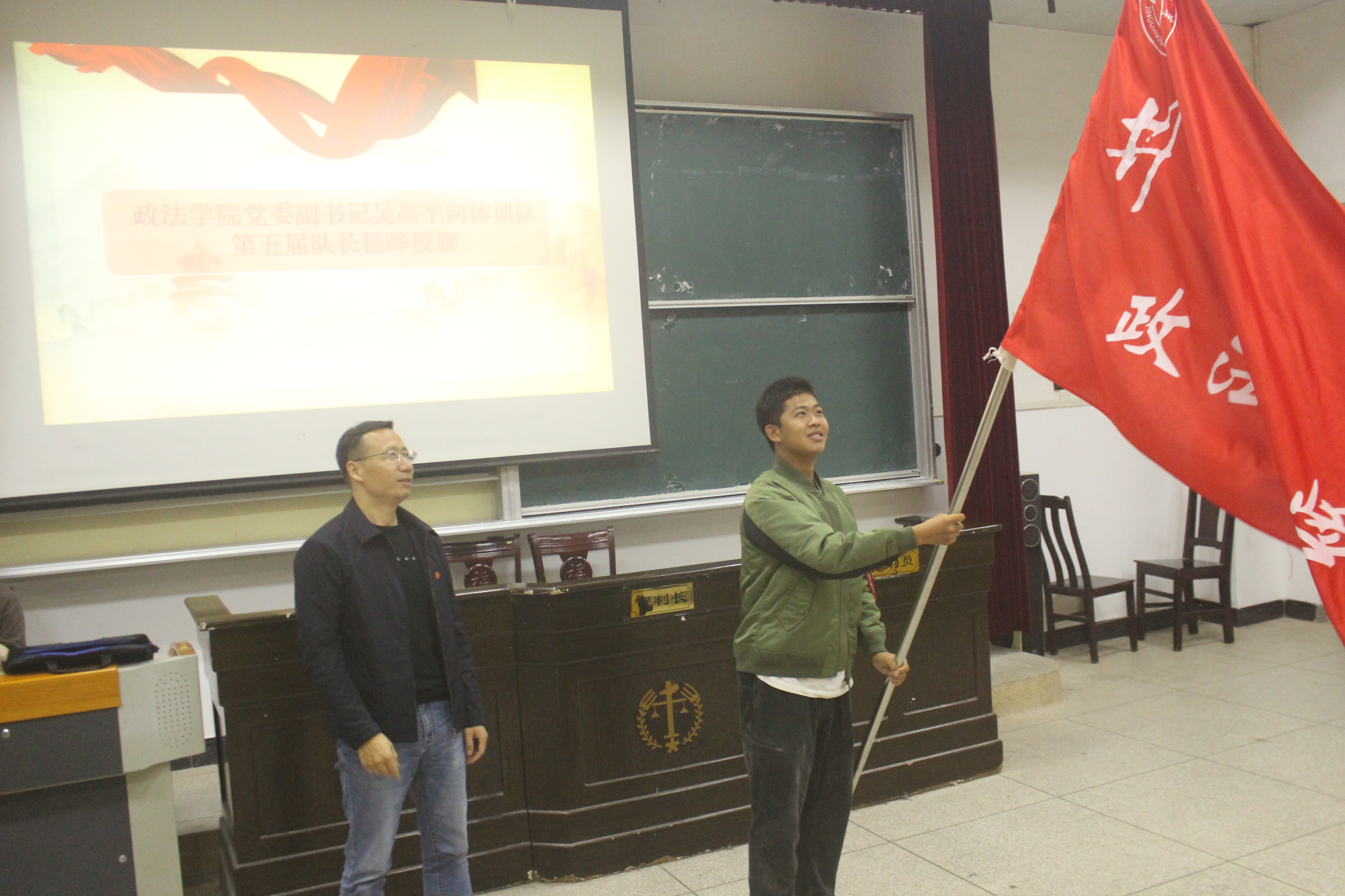 为使我院学生增强体育意识,培养运动员精神,11月17日晚7时30分,我院于5栋408室召开体训队换届大会。政法学院党委副书记吴高平,团委书记、学生科科长杨婷,辅导员肖文海,第十四届团委学生会成员及院体训队全体成员出席此次会议。