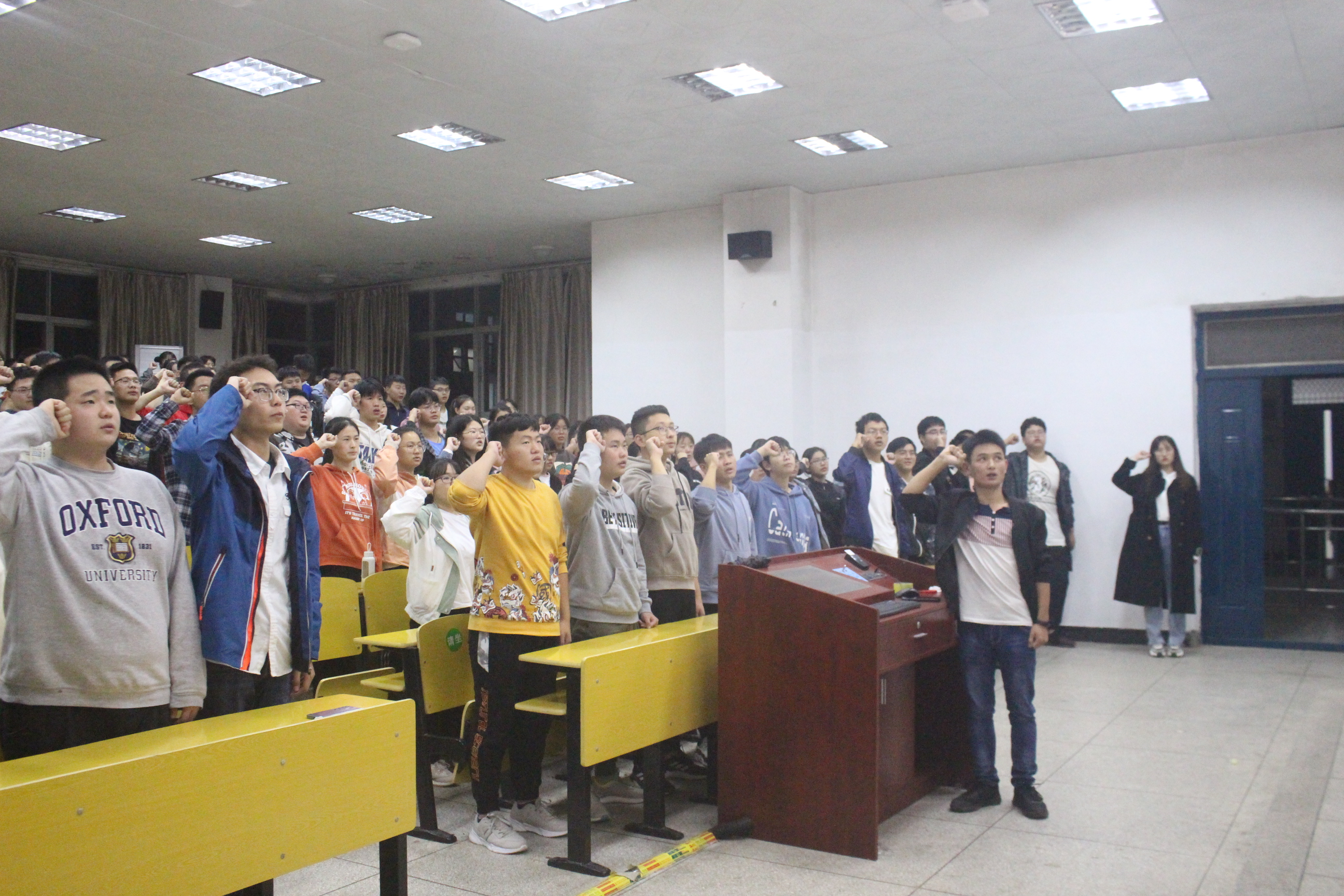 活动上,同学们认真学习习近平总书记的贺信精神,在贺信中,习近平总书记对共青团在近年来的工作给予了肯定,并希望新时代的青年能有远大理想、家国情怀,能担当大任。