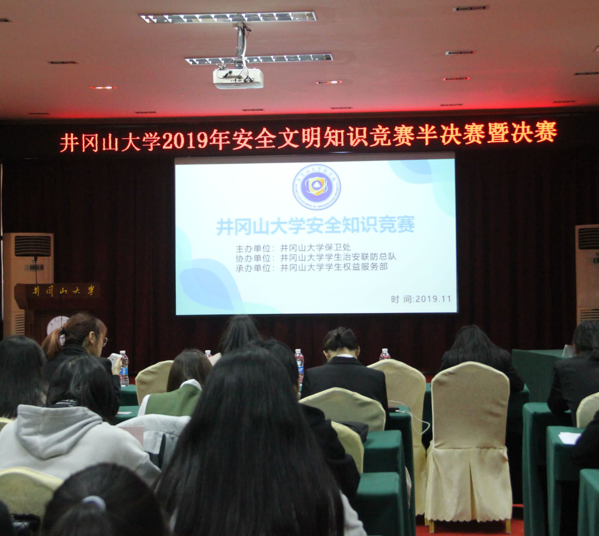为引导我校学生学习自护、自救知识,强化学生的自我安全教育,11月30日下午2时30分,井冈山大学2019年安全文明知识竞赛半决赛及决赛于行政大楼四楼会议室举行,初赛中排名前八的学院代表队参与此次竞赛。