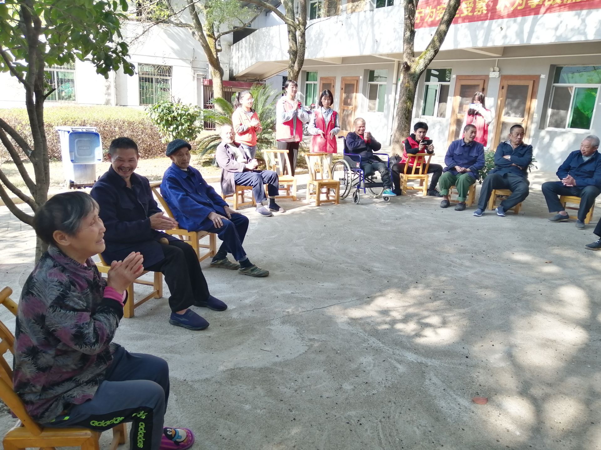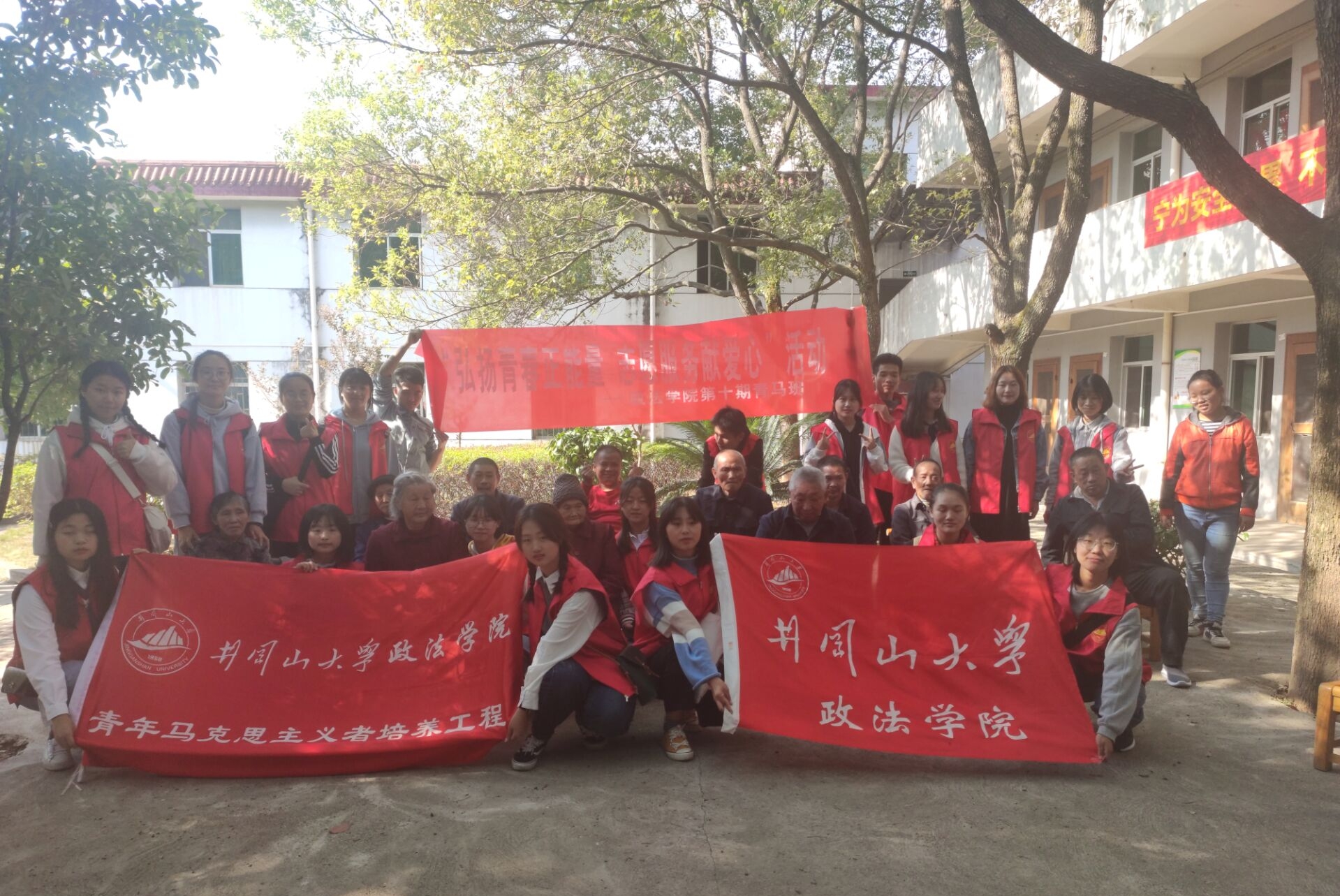 为传承尊老爱幼的传统美德,慰问孤独老人,丰富老人们的文化生活,同时提升志愿者的社会责任感与奉献意识,11月16日上午8时,政法学院团委组织部、社会实践部(爱心社)组织志愿者前往天玉镇敬老院慰问老人,我院学子踊跃参与。 活动前,组织部联系敬老院相关负责人,并对志愿者进行专业培训,规划活动流程、合理分配任务。活动中,志愿者们帮老人打扫卫生、与老人交流心声、进行文娱表演等。活动进行到高潮,老人们讲述其年轻时的精彩事迹,脸上洋溢着幸福的笑容。全场气氛温馨、其乐融融,展现社会和谐的美好景象。活动接近尾声,老人们对青年志愿者寄予期许,志愿者们认真倾听,并承诺:定会不忘初心、传递爱心、服务社会。最后,志愿者与老人合影留念。