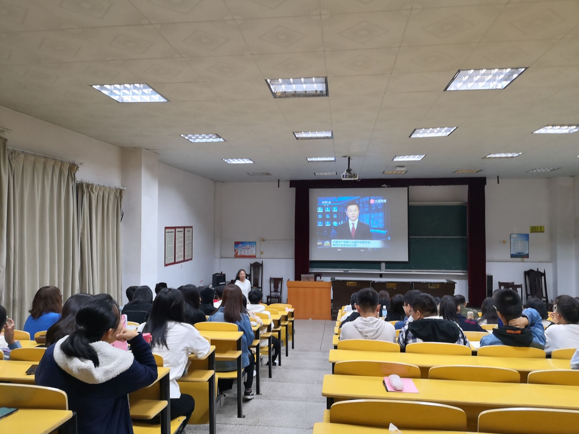 为学习贯彻党的十九届四中全会精神,11月9日晚7时,我院团委组织部于5栋408室组织青马班学员观看全会相关视频,第十期青马班全体学员到场参与。