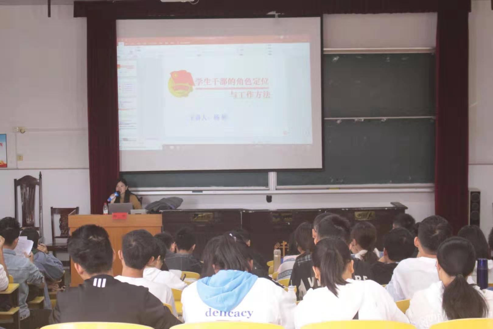 为了提高学生干部的工作能力,使其更好的适应本职工作,为学院培养一批高素质骨干,11月9日上午9时40分,我院于5栋408室举行“学生干部的角色定位与工作方法”讲座,政法学院团委副书记、学生科副科长杨婷作为主讲人,我院全体学生干部到场参加本次讲座。