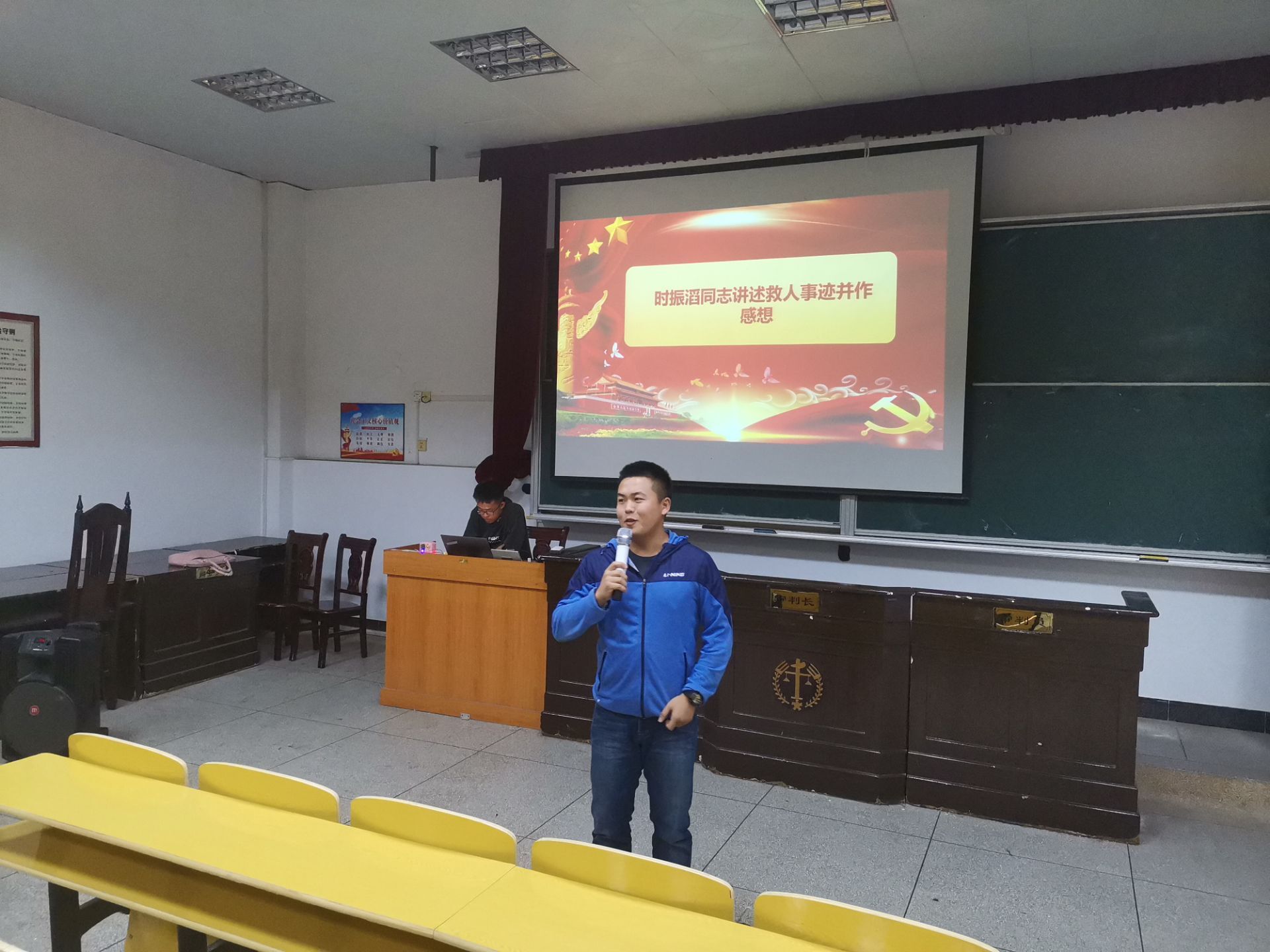 为贯彻习近平新时代中国特色社会主义思想和党的十九大精神,用榜样的力量感召政法学子,11月7日晚6时30分,政法学院团委组织部于5栋408室开展关于“学身边榜样,争做时代好青年”主题团日活动。19级全体团员到场参加。 活动开始,全场起立奏唱共青团团歌。组织部组织在场团员学习袁记平、时振滔等师生面对群众危难时敢于挺身而出、无私奉献、淡泊名利的故事,并邀请时振滔分享其亲身经历。他从救人时的不假思索,看护幼儿时的耐心安抚,做好事却不留名等方面具体讲述了这次先进事迹。主持人鼓励大家以他们为榜样,争做时代好青年。此外,团员们认真观看相关榜样视频,积极分享心得体会和生活中榜样的例子。此次团日活动围绕“学身边榜样,争做时代好青年”这一主题,把学习榜样活动与深入贯彻落实党的十九大精神结合起来,进一步发挥典型的示范和导向作用,鼓励和引导广大青年学生积极向上、砥砺前行,争做优秀的新一代青年学生。