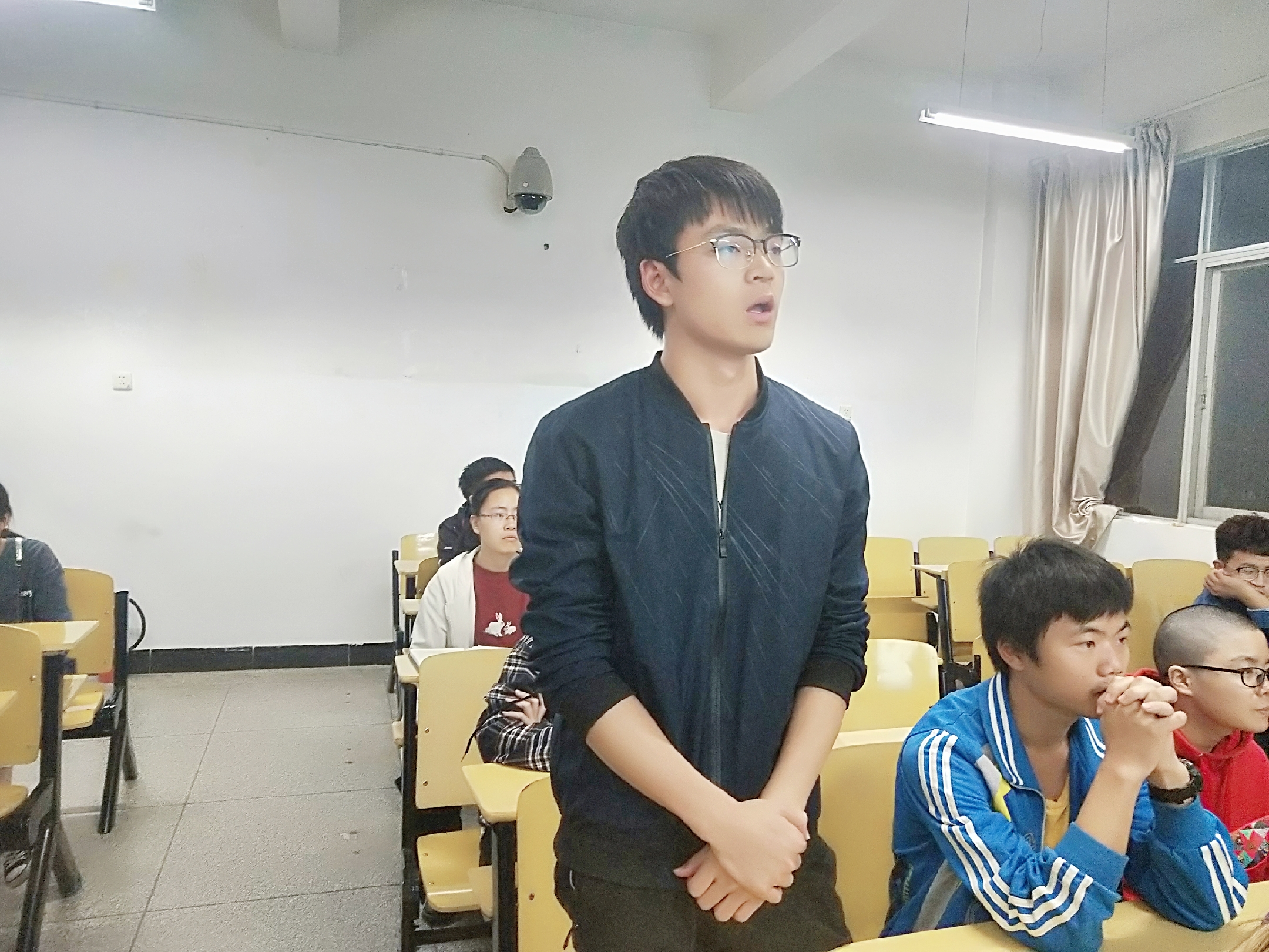活动伊始,杨韬简单介绍小组的起源,并总结多年工作经验,提出“居安思危,时刻准备”的宗旨,希望各成员具备“保密、担当、警惕、奉献”的优良品质。杨韬指出学生紧急事务处理组需要处理的问题涉及校园暴力、非法传教、网络舆论等多个方面,号召各成员全面了解学生紧急事务处理组的职能,乐于奉献,做“隐藏在战线上的无声战士”。随后,杨韬以PPT的形式,图文并茂地展示了防爆盾、消防绳、灭火拖把等安全工具,并呼吁成员们掌握其用法,有效应对险情。活动进入成员提问环节,对于工作方面的问题,杨韬指出有线上线下两大重点:各成员要关注网上舆论和身边的变化,并予以处理;对于合作交流的问题,杨韬提出要协调好与各部门之间的关系,以便在紧急情况下可以寻求帮助;对于帮助有困难的同学,杨韬就男女生特点的差异提出了不同的应对方法。最后,其建议定期组织培训与考核,以保证学生紧急事务处理组的先进性。