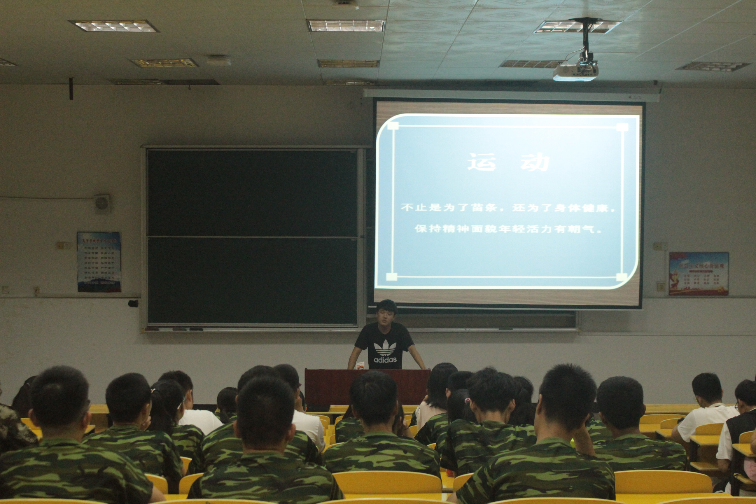 黄成以精美的ppt演示从发展史、荣誉与奖项、优异加分制度和主要运动项目四个方面向新生呈现了政法学院体训队的全貌。随后,他结合自身亲身经历向新生们详细介绍了体训队的训练内容和训练项目,同时也由感而发地讲述了体训队给他带来的磨砺与成长,使新生们对体训队有了更多的认识与了解,对自身的选择也更加的明确。