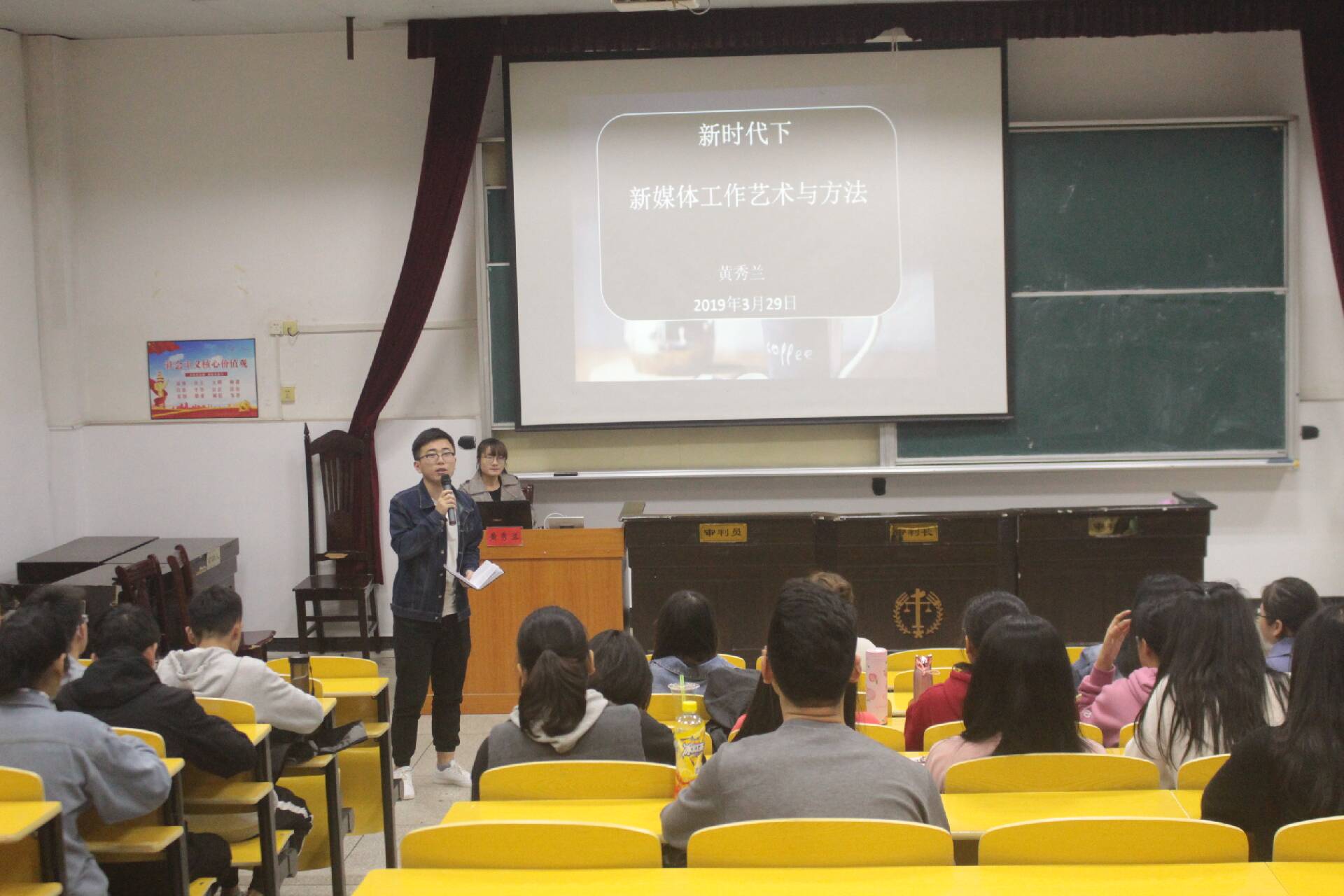 为提高同学们的新媒体技能,更好地适应工作需要,3月29日晚7时,政法学院邀请教育部中国大学生在线井冈山大学校园网通站指导老师、机电工程学院专职辅导员黄秀兰于五栋408室开展“新时代网络新媒体工作艺术与方法”主题讲座。政法学院学生团委副书记吴开隆主持讲座,第九期青马班全体成员参与会议。