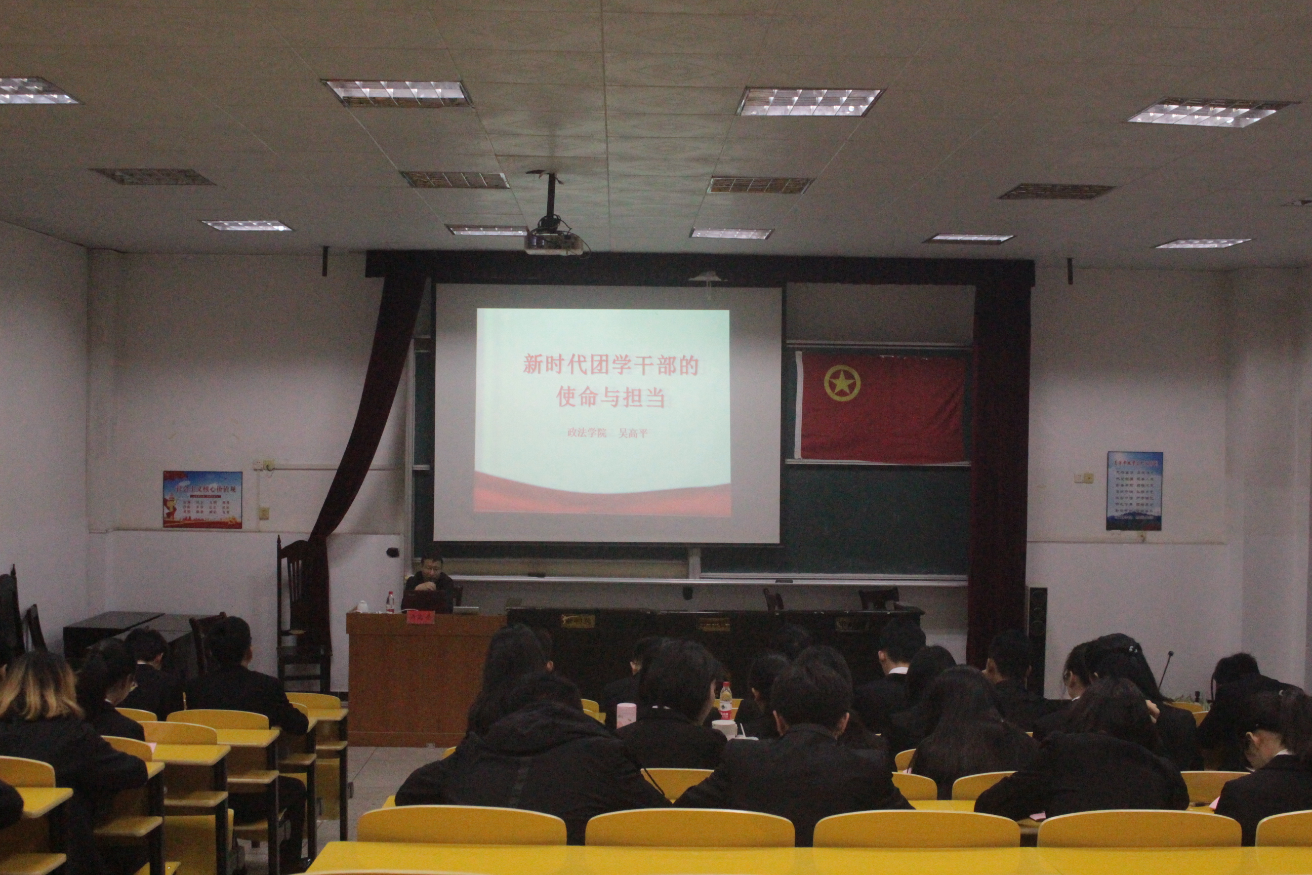为了进一步加强青年大学生的思想建设,让全院青年团干更好地学习党的十九大精神。3月23日上午9时,我院于5栋408室顺利举行第九期青马班开办第一课—新时代团学干部的使命与担当。政法学院党委副书记吴高平担任此次讲座主讲人,第十二届团委学生会成员,第八期青马班优秀学员与第九期青马班学员到场参与。