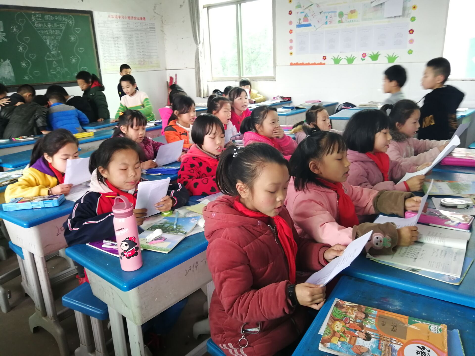 本次支教活动主要以文艺类为主,旨在调动孩子们的艺术热情。志愿者分组来到不同年级教室,为孩子们带来了唱歌、朗诵、手工等多种形式的艺术活动,孩子们在志愿者的带领下大声朗诵《面朝大海,春暖花开》,以充沛的情感去读懂诗歌的内涵。同时,志愿者还与孩子们玩起了成语接龙、动作接龙等小游戏,让孩子们在游戏中感受友情、收获知识。活动尾声,一年级的小朋友以一曲《童话镇》送别了志愿者们,而他们摆放在书桌上的手工剪纸无声地感谢着志愿者们的爱心。