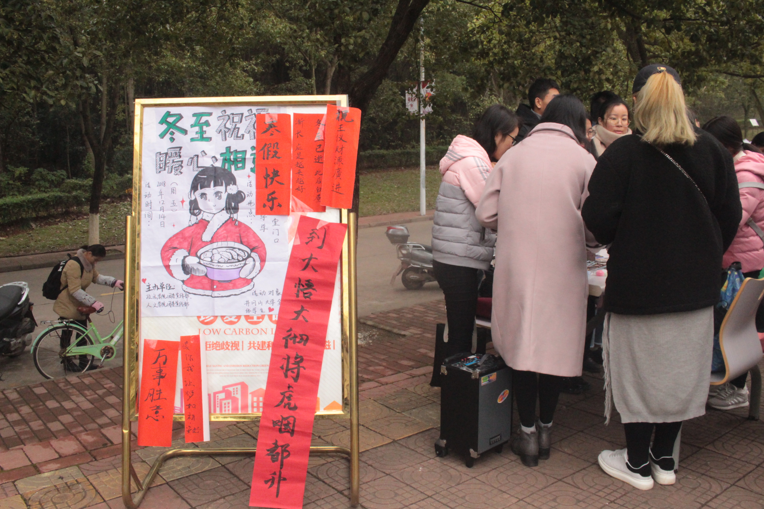 冬至来临,2018年已接近尾声,为迎接新年的到来,12月14日中午,政法学院团委宣传部同人文学院团委宣传部于一食堂门口举行了冬至祝福活动。