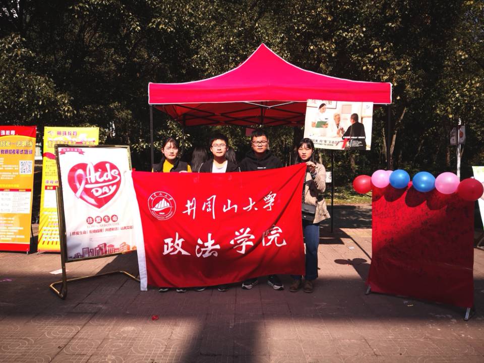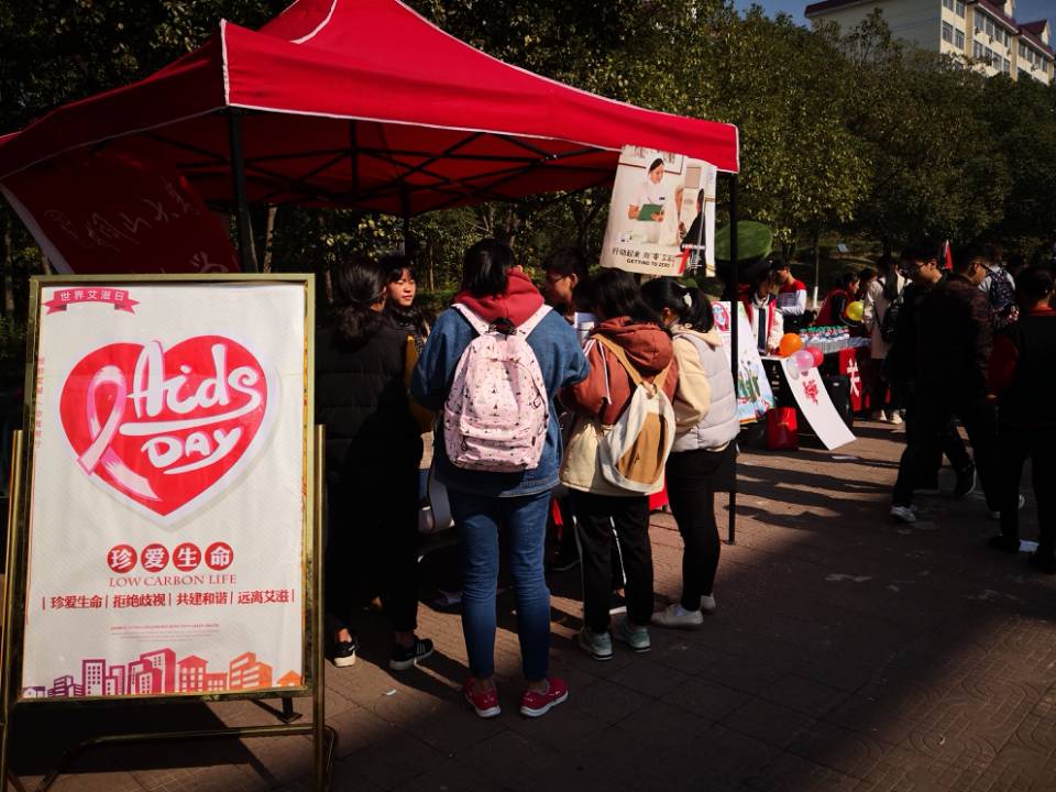 为提高在校学生对艾滋病的认识,使艾滋病预防知识宣传到每一个人,11月30日中午,政法学院团委社会实践部(爱心社)于南区一食堂处摆点宣传防艾日,众多学生参与其中。