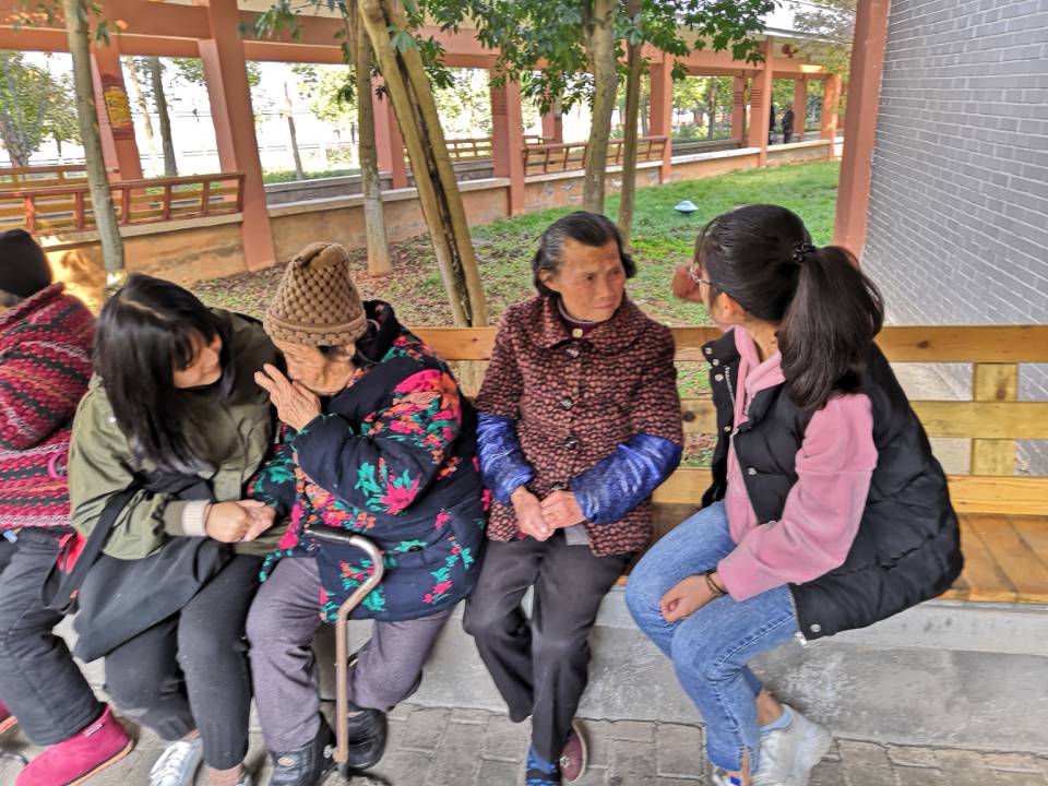活动中,志愿者分为两队,一队和老人们聊家常,一队与孩子们做游戏。走近老人,志愿者如八仙过海,各显神通,从身体健康聊到儿孙满堂,从学校活动谈到室友近况,更有甚者,与老人约战象棋,一显身手,一时间,男女老少欢聚一堂,其乐融融。走近儿童,志愿者与孩子们做游戏,讲故事,赛歌喉,场面热热闹闹,欢声不断。约10时30分,全员合影留念,有序带回,活动圆满结束。