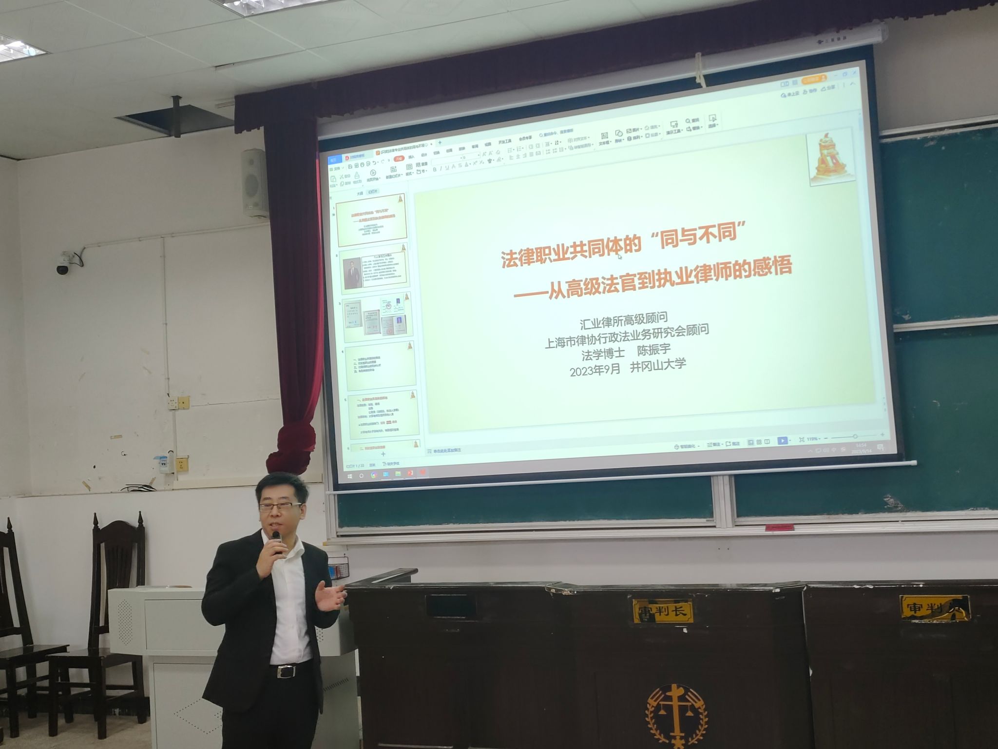 9月14日下午2时,政法学院在5栋408教室举办开展了“法律职业共同体的同与不同”专题讲座。上海汇业律师事务所高级顾问、公法业务研究中心主任陈振宇担任主讲人,上海汇业律师事务所合伙人赵晋为与谈人。学院饶龙飞博士主持了此次讲座,22级法学专业学生参与。