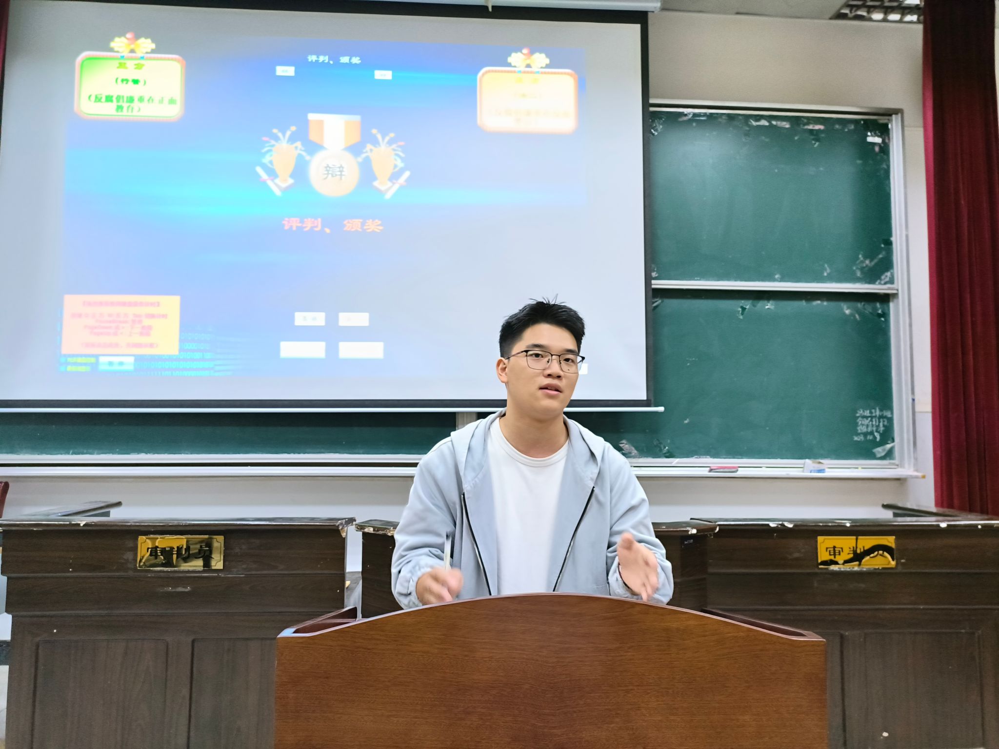 为丰富新生大学生活,提高学习氛围,激发同学们对辩论赛的兴趣。10月8日晚6时30分,政法学院于5栋408教室举行“迎新杯”辩论赛初赛。本次辩论赛共分两场,第一场由资深优秀辩手郭晋焘、业浩、郑皓侠担任评委,第二场由资深优秀辩手郭晋焘、姜京爽、廖福娣担任评委,23级新生到场观赛。
