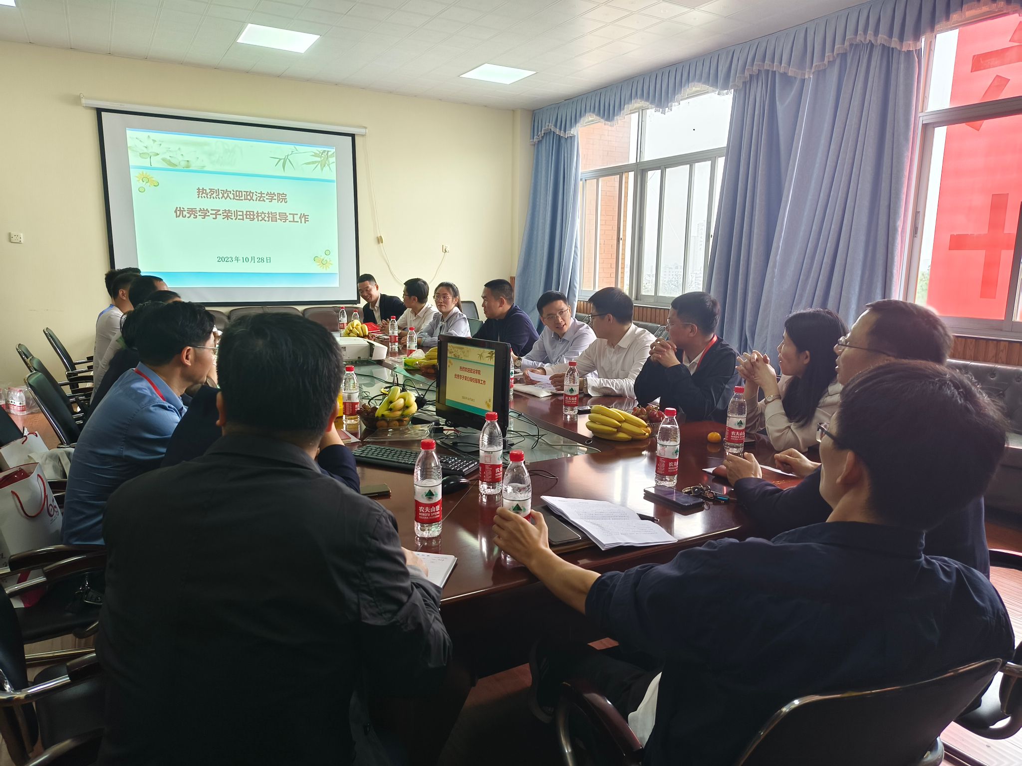 为热烈欢迎校友回归母校,推动学院高质量发展,2023年10月28日下午,政法学院于5栋401室开展65周年校庆优秀校友座谈会,政法学院党委书记吴高平,院长李耀锋,副院长欧阳晓安、习剑平及来自全国各地的多位优秀校友参加。