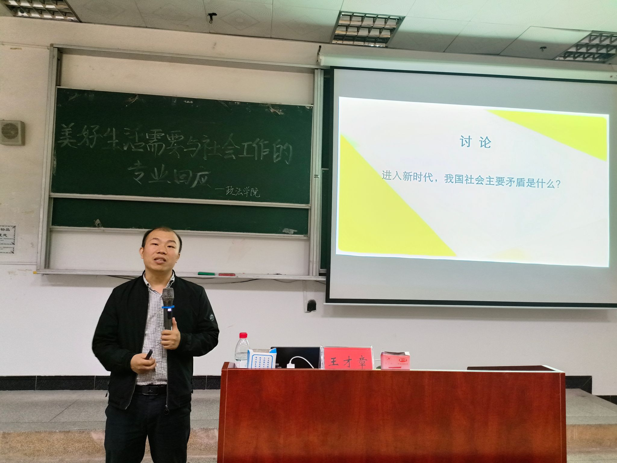 为让同学们明晰社会工作专业在人民美好生活需要中的作用,10月30日晚6时30分,政法学院特邀王才章老师于5栋307教室举办“美好生活需要与社会工作的专业回应”主题讲座。