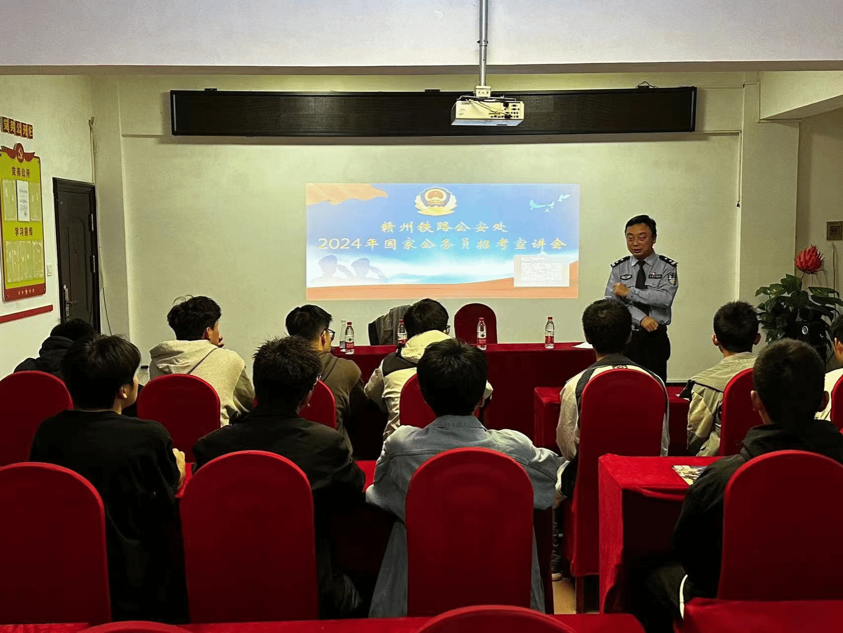 为进一步增进鼓励政法优秀学子加入铁路公安,10月21日上午9时,政法学院于19栋党员活动室顺利承办南昌铁路公安局赣州公安处2024年招考宣讲会。