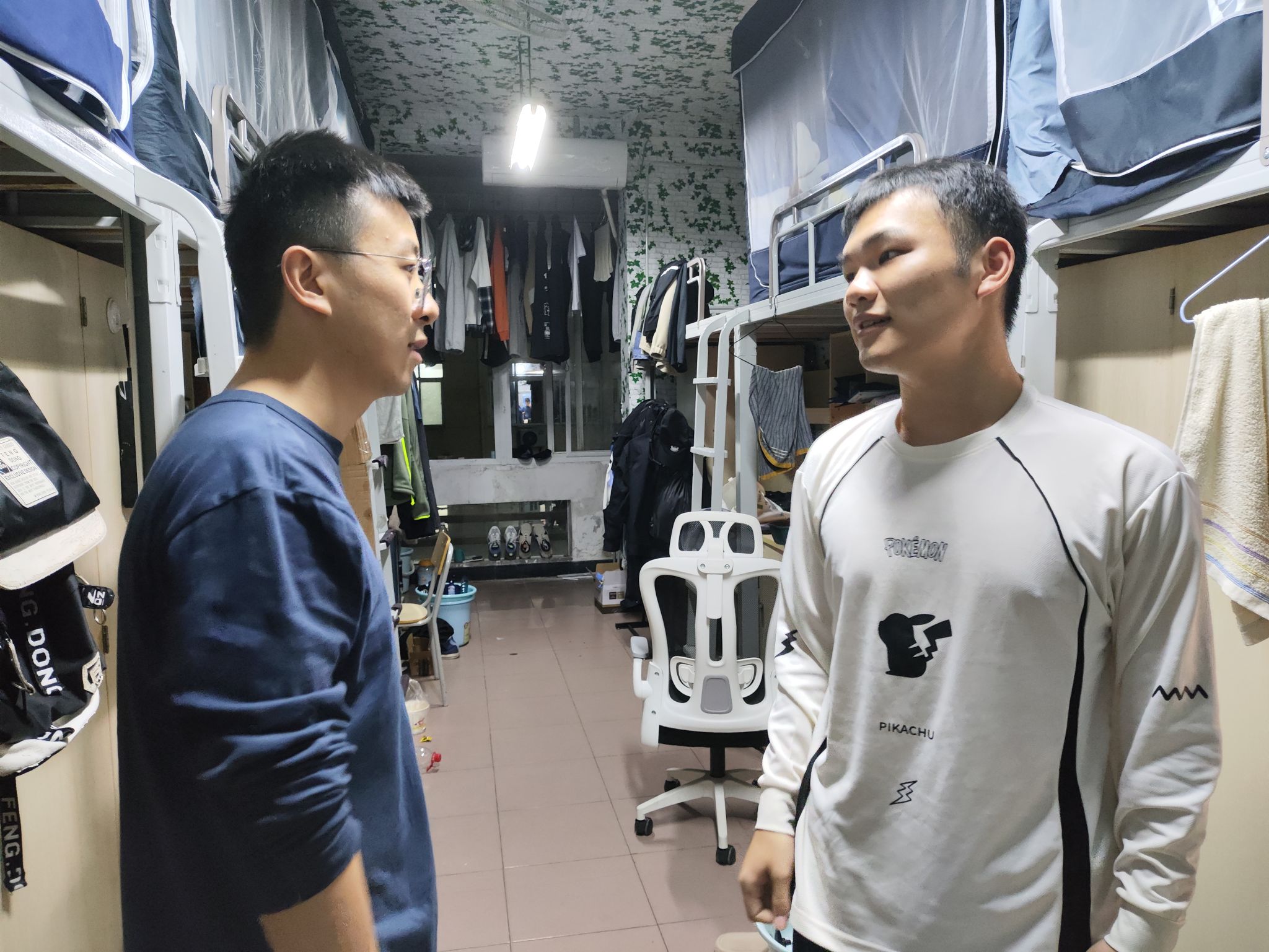 在宿舍走访中,认真检查了各宿舍卫生,查看是否有私拉乱接电线网线、饲养宠物、使用违规电器等情况。经过检查,发现部分宿舍大多数宿舍卫生情况良好,但少部分宿舍仍旧存在卫生死角,发现存在电灯无法正常使用的问题,对此立即记录下受损情况,并提醒同学们及时报修。与此同时,老师与同学们亲切交谈,了解到同学们的生活、学习情况,解决了同学们反映的问题。走访结束后,同学们纷纷感谢老师们的关怀,表示在充满关心的交谈中,深切地感受到温暖。