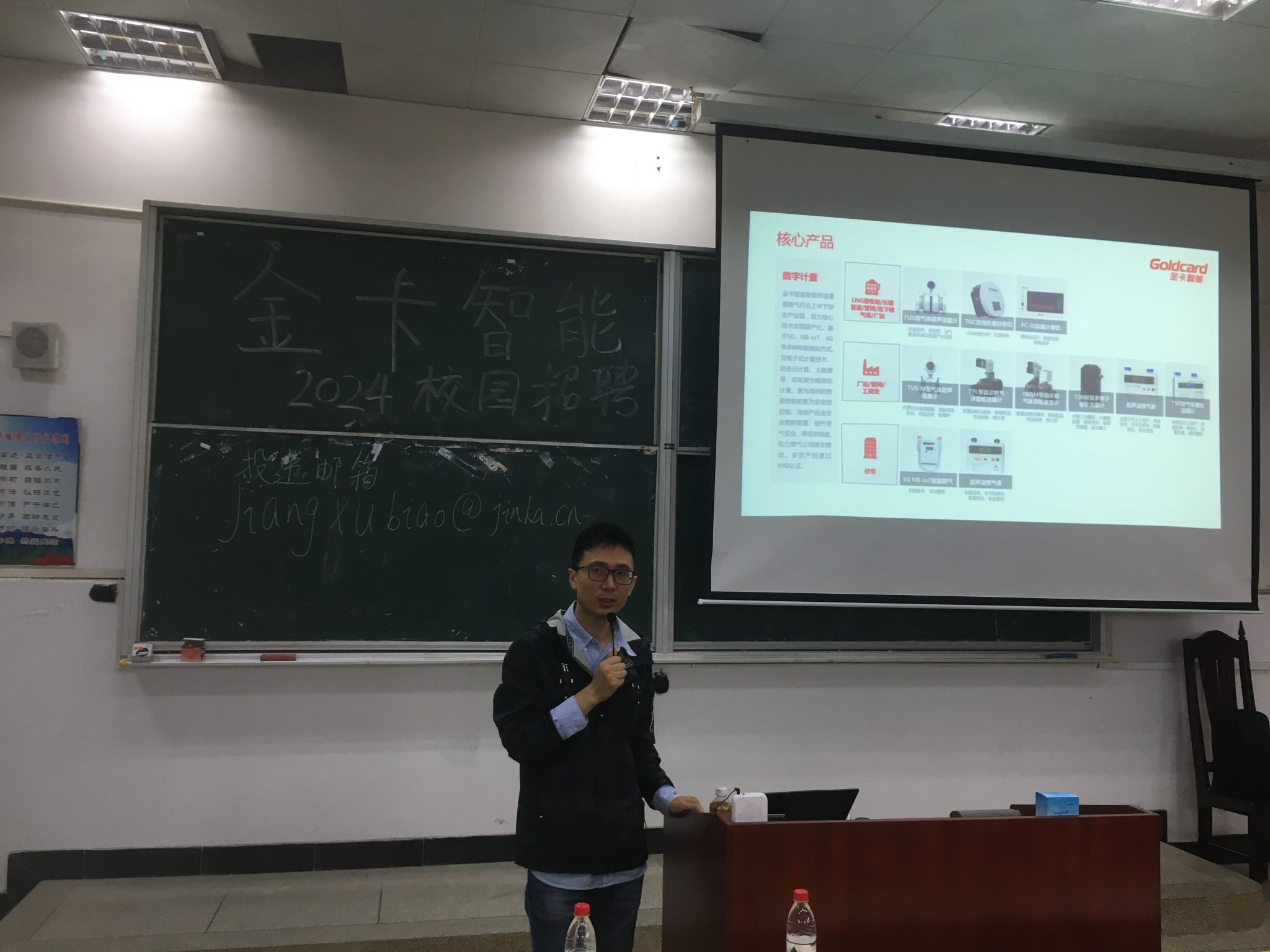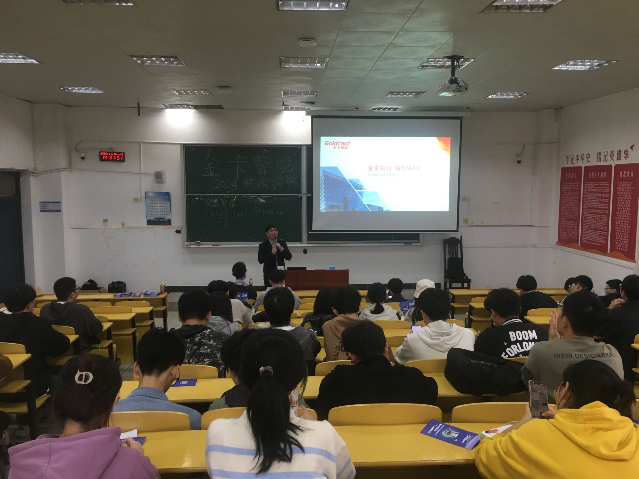 为做好政法学院学生就业工作,让学生重视未来职业规划。11月10日下午2时30分,政法学院于五栋407教室开展金卡智能校园招聘会。本次招聘会由金卡智能公司解决方案支持部经理郭连元和主管江旭标担任主讲。