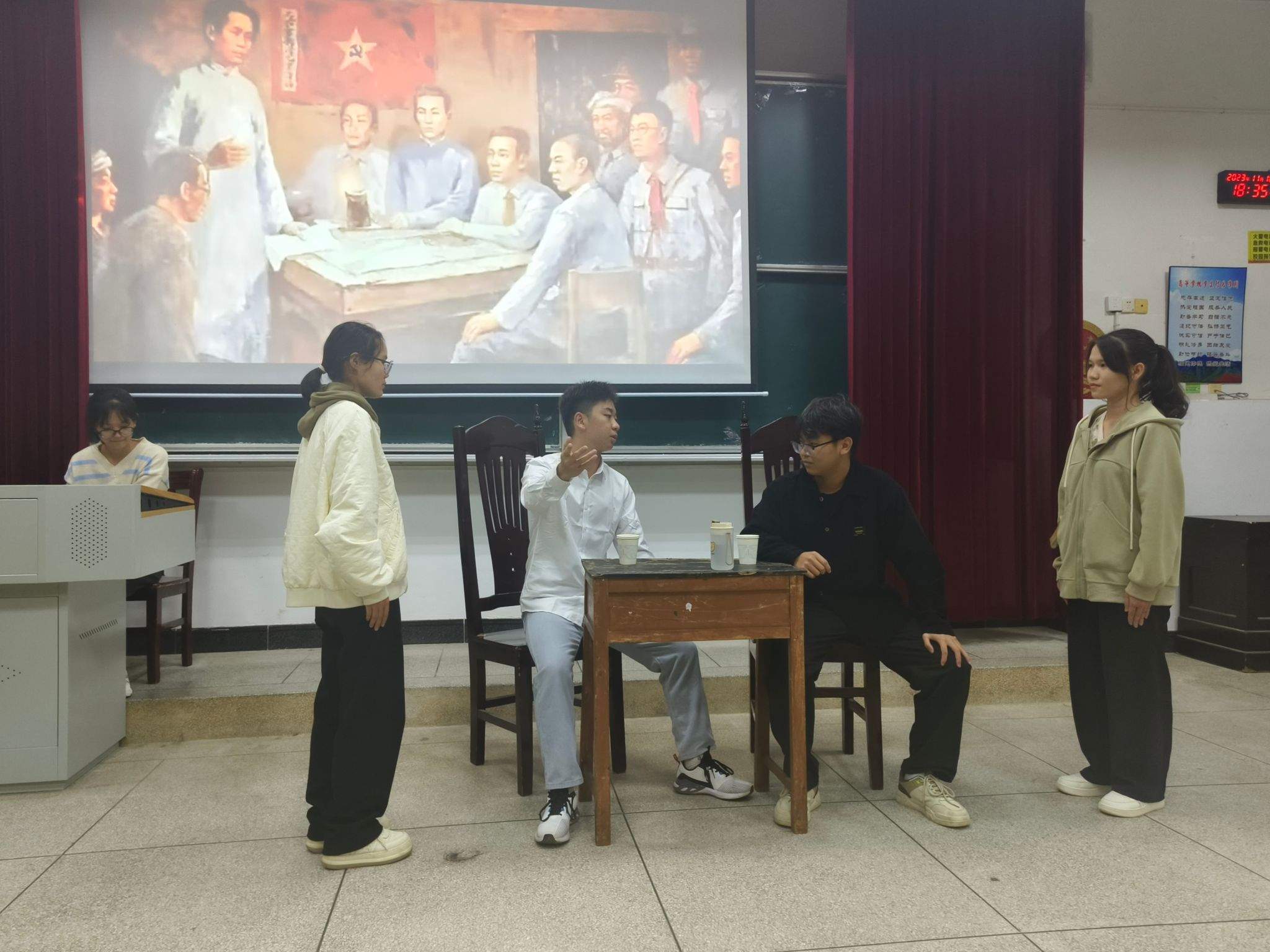 本次比赛共有四组参赛选手,他们通过讲解和表演相结合的形式,向观众们演绎了井冈山革命根据地的斗争历史,黄文秀脱贫攻坚的奉献一生,江梦南对抗命运、敢于追梦的奋斗故事和革命时期的军民鱼水之情。比赛现场高潮迭起,气氛活跃。同学们纷纷表示“故事和表演”的展示形式,让比赛变得更加鲜活和生动,让人身临其境。表演结束,经过评委评判,23法学本一班获得第一名,23法学本二班获得第二名,23行政管理本一班获得第三名,23社会工作本一班获得第四名。最后,肖文海进行点评,他对参赛选手的表现给予一定的肯定,从声音、表演、呈现形式等不足之处提出了建议,也希望选手们能汲取此次比赛经验,成就更饱满立体的表现。