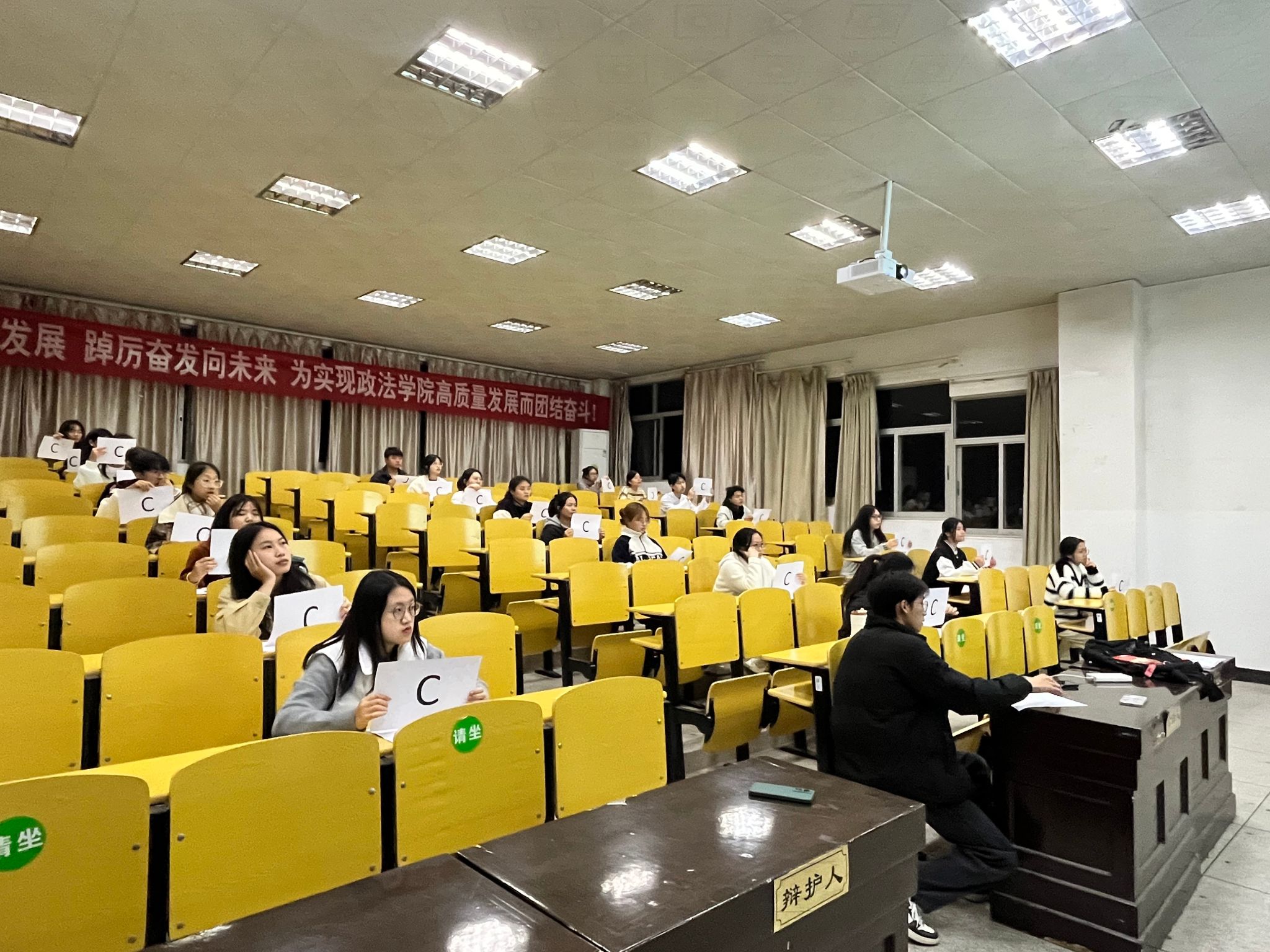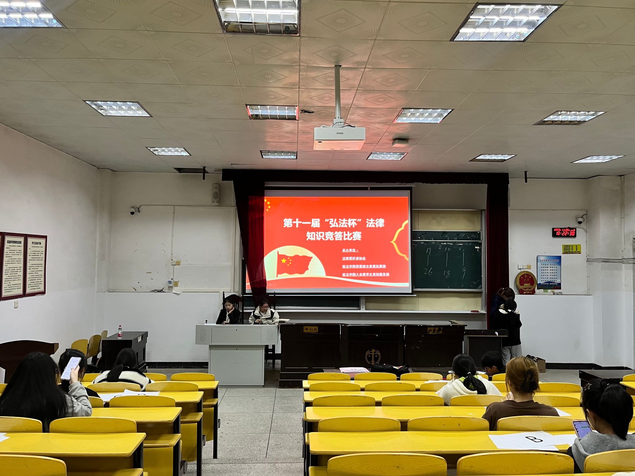 为传播法律知识、弘扬法治精神,深入贯彻落实《民法典》的学习,领会其中的法治理念,11月25日晚6时30分,政法学院团委综合素质拓展部、大自委学生资助服务部联合法律爱好者协会于5栋408教室举行法律知识竞赛决赛,政法学院学生以及法律爱好者协会成员积极参与。