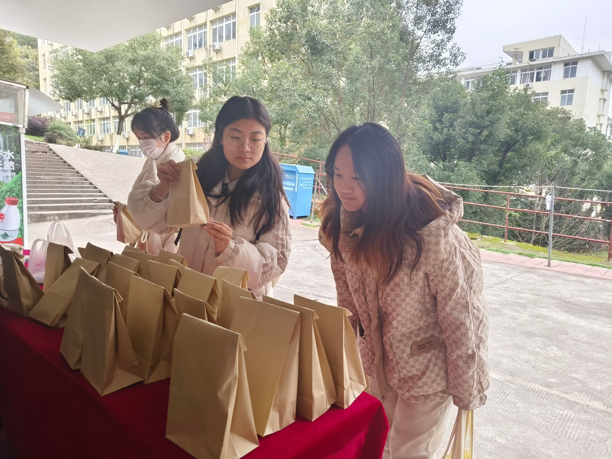“祝学长一战成硕,成功上岸”“祝学姐功不唐捐,玉汝于成”……在19栋学生宿舍楼下的慰问活动现场,工作人员们对考研学生们的殷殷祝福驱散了冬日的寒冷。面对众多贴有不同标语的小礼包,考研的同学们认真阅读,挑选并拿走了自己喜爱的那一份。精心包装的小礼包中含有暖宝宝和考研文具,寄托着学院对考研学生的美好祝福和殷切期许。