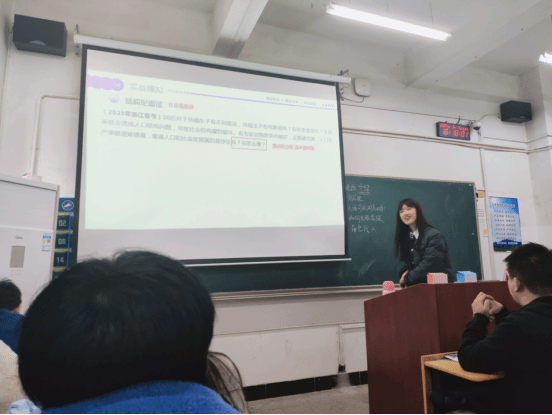 本次活动以“个体面试与表达能力提升”为主题,课程中,葛以璇老师从面试礼仪、面试分类、面试题型和实战模拟四个方面进行详细的讲解,她针对专升本班级同学的需求,剖析了面试中的常见题型,以提升同学们在面试时的表达能力。