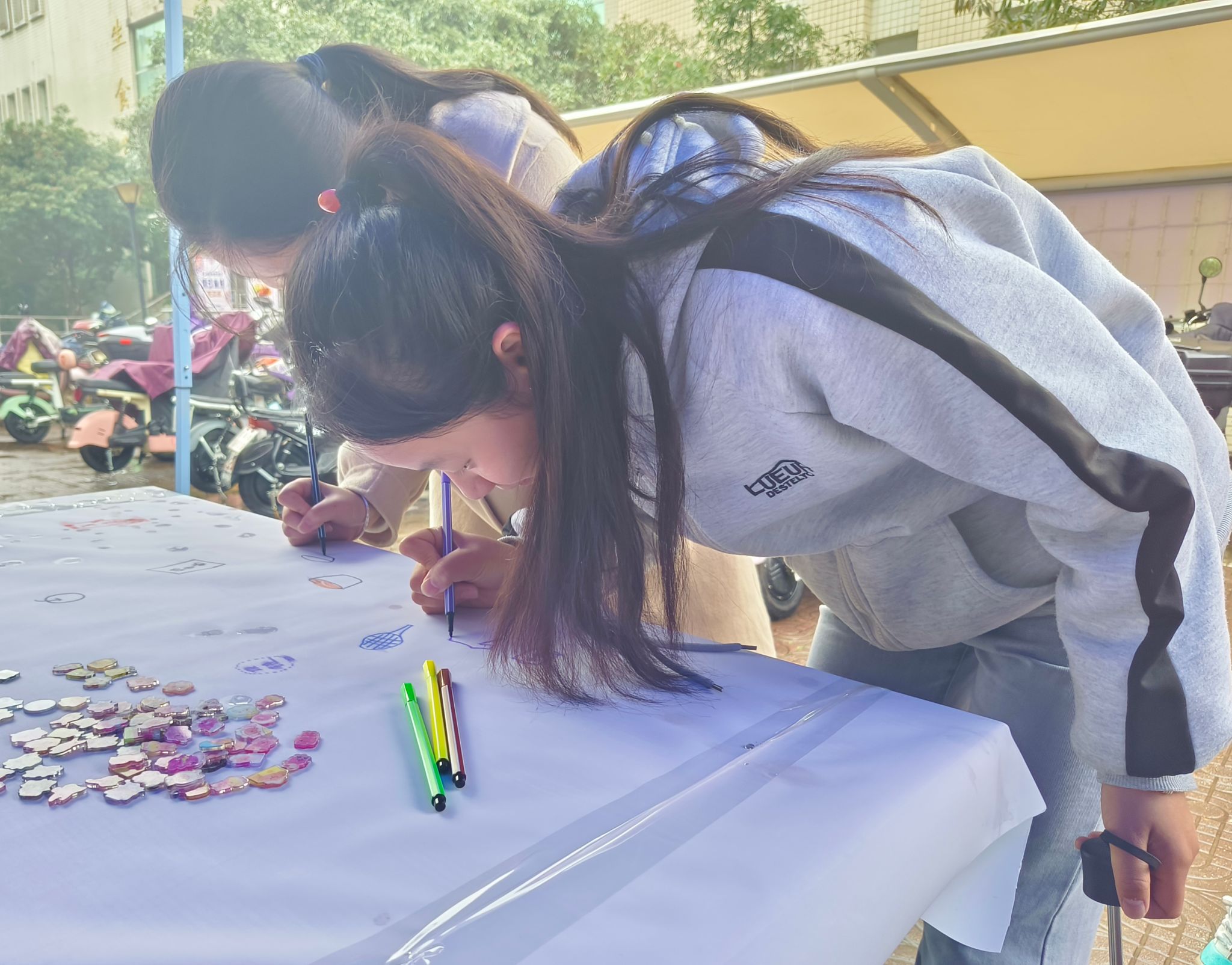 在活动现场,精心制作的消费者维权宣传海报、铺有白画布的活动展桌、整齐摆放好的美术画笔和精美小奖品吸引了过往同学驻足观看、咨询。经过志愿者们对活动内容的介绍,同学们便开始互相叙述自己的维权经历,并用各色的画笔在画布上画出维权经历中的各种商品。此外,志愿者们也向大家普及和宣传了消费者维权知识及有效途径。在参加完各项活动后,同学们在横幅上签下自己的名字,表明了拒绝假冒伪劣商品,维护自身合法权益的决心。